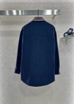 Corduroy made of all cotton material with delicate texture and clear retro navy blue texture, suitable for autumn and winter wear. The collar silhouette of the shirt can be used as a jacket, and the whole body has vertical grooves and stripes, combined with a chest pocket ➕ Embroidered letters, contrasting colors, spliced leather collar, illuminated details, more relaxed and simple texture, presenting a casual and free style of dressing