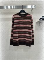 Density, fine needle weaving, clear woolen texture, comfortable and skin friendly shoulder cutting, elegant and intellectual edging, tightened with spiral stripes, full of elasticity, comfortable to wear, arranged in black and red contrasting stripes ➕ Snowflake element pattern decoration