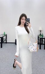 Made of all cotton material, the texture is comfortable and full of elasticity. The slim fit round neck bottom dress is cut, and a three-dimensional letter logo is sewn in the center of the chest to highlight the brand style. It has a strong elastic fit, visually narrowing and elongating, slim fit and slimming, making it fashionable and eye-catching when worn alone