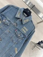Cotton denim material, multiple washings, presenting a crisp texture. The collar and shoulder denim jacket is cut, and the flip pocket is matched with basic contour lines to create a durable and high-end look. The letter pattern is embellished with contrasting three-dimensional craftsmanship, which is retro and natural, highlighting the brand’s style. The loose and slim fit of the jacket creates a neutral, cool and fashionable style. It can be worn all year round to show off its charm.