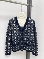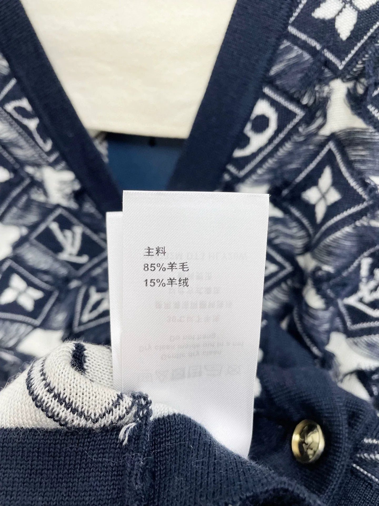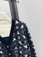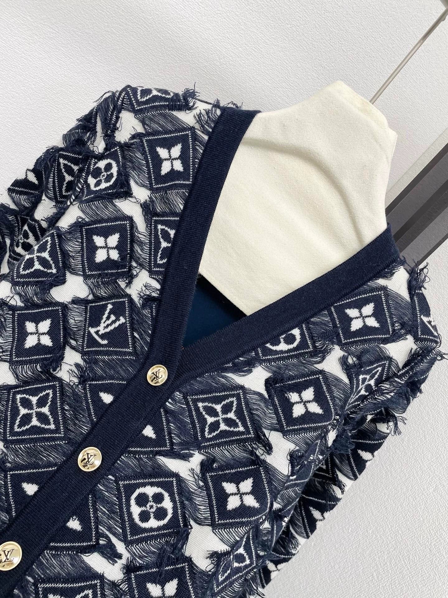 Deep blue and white color scheme, classic floral jacquard design, embellished with metal buttons. Fabric, soft and comfortable. V-neck design, front buckle, tassel decoration, stylish and atmospheric