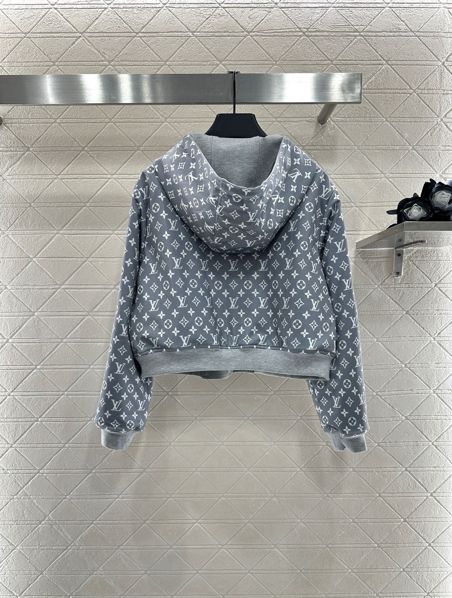 Texture, luster, comfortable, and flowing hooded short jacket with fashionable and casual cut. Designed to be worn on both sides and decorated with iconic floral letters on one side, the brand style instantly enhances with rich visual effects, making it more fashionable and versatile. Plain colors make it look slimmer and add vitality. Paired with straight leg pants of the same series that echo the style, drawstring adds personality and leisure to the overall look. A set of simple and high-end daily outfits is essential