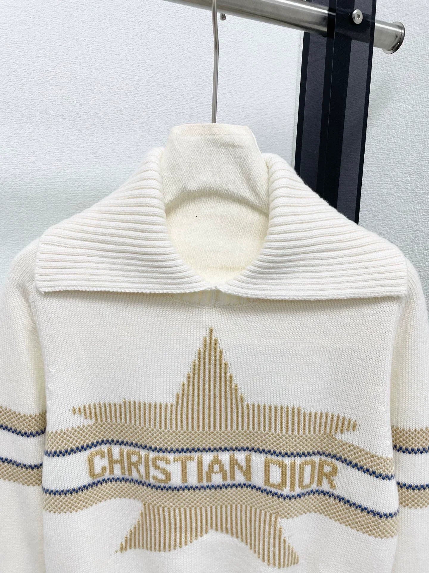 25fw Vertical contrasting navy neck sweater