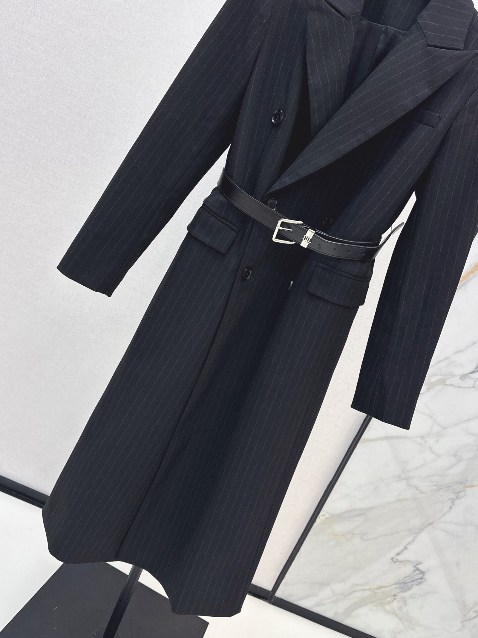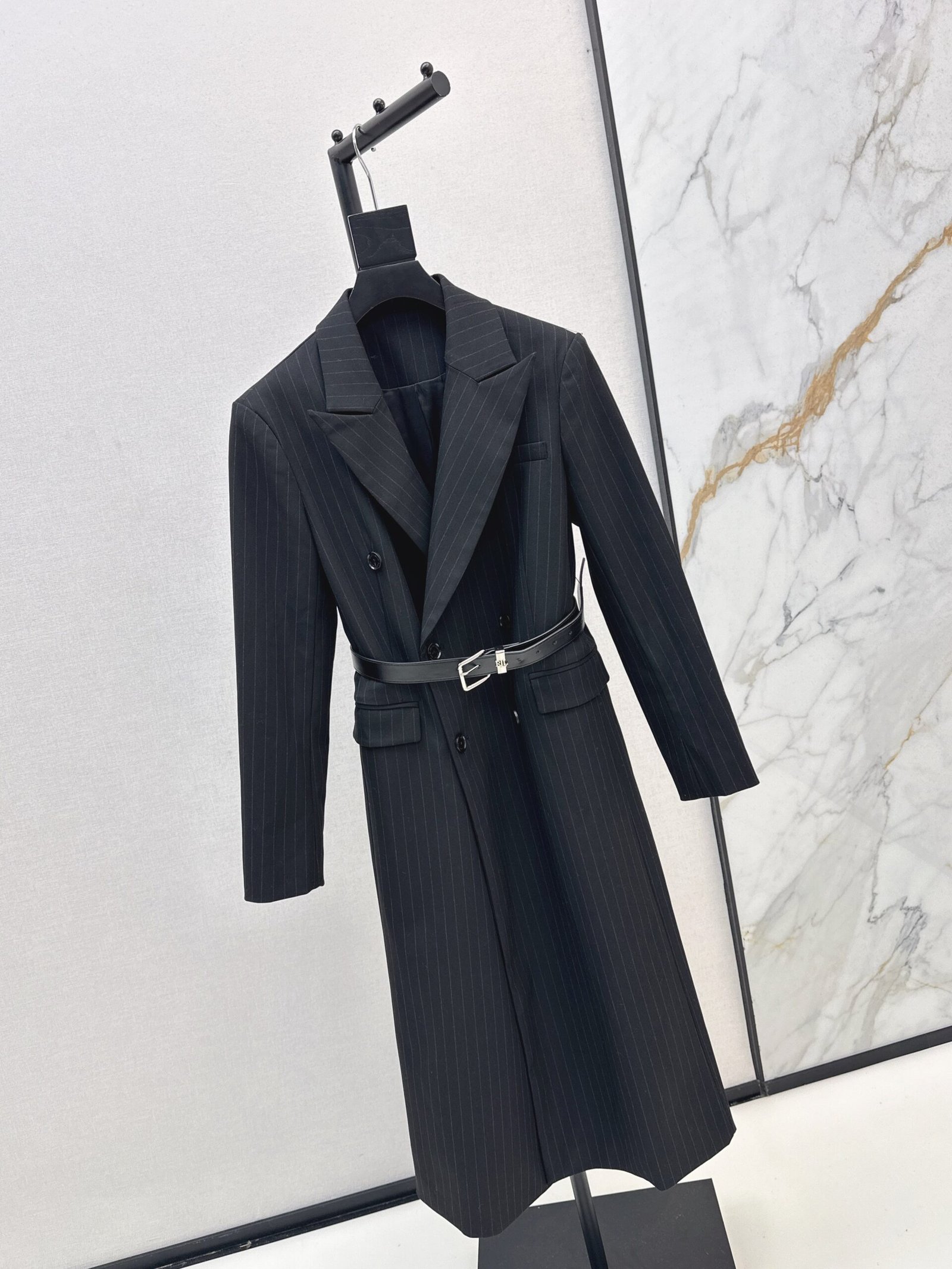 25fw Vertical striped waistband long coat jacket