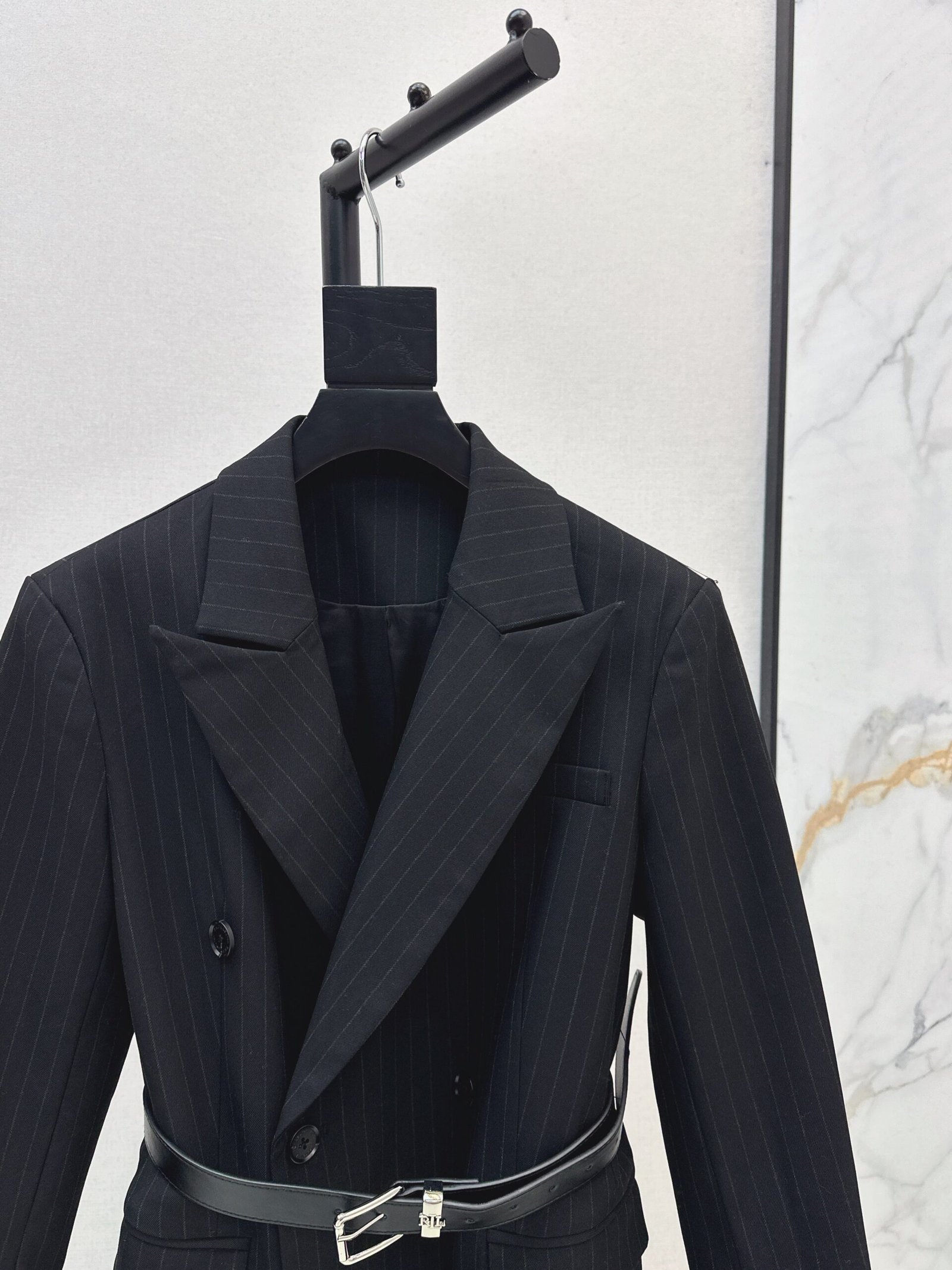 Classic double breasted fashionable combination with H-shaped cut over the knee length, elegant, dignified, stable, and generous workmanship details are also great. The vertical stripes have a visual effect of elongating the body, making it appear thin and tall. Paired with a waistband design, the waistline can be raised in one second. Whether worn alone or in layers, it has its own sense of fashion. It can be used for commuting or daily life
