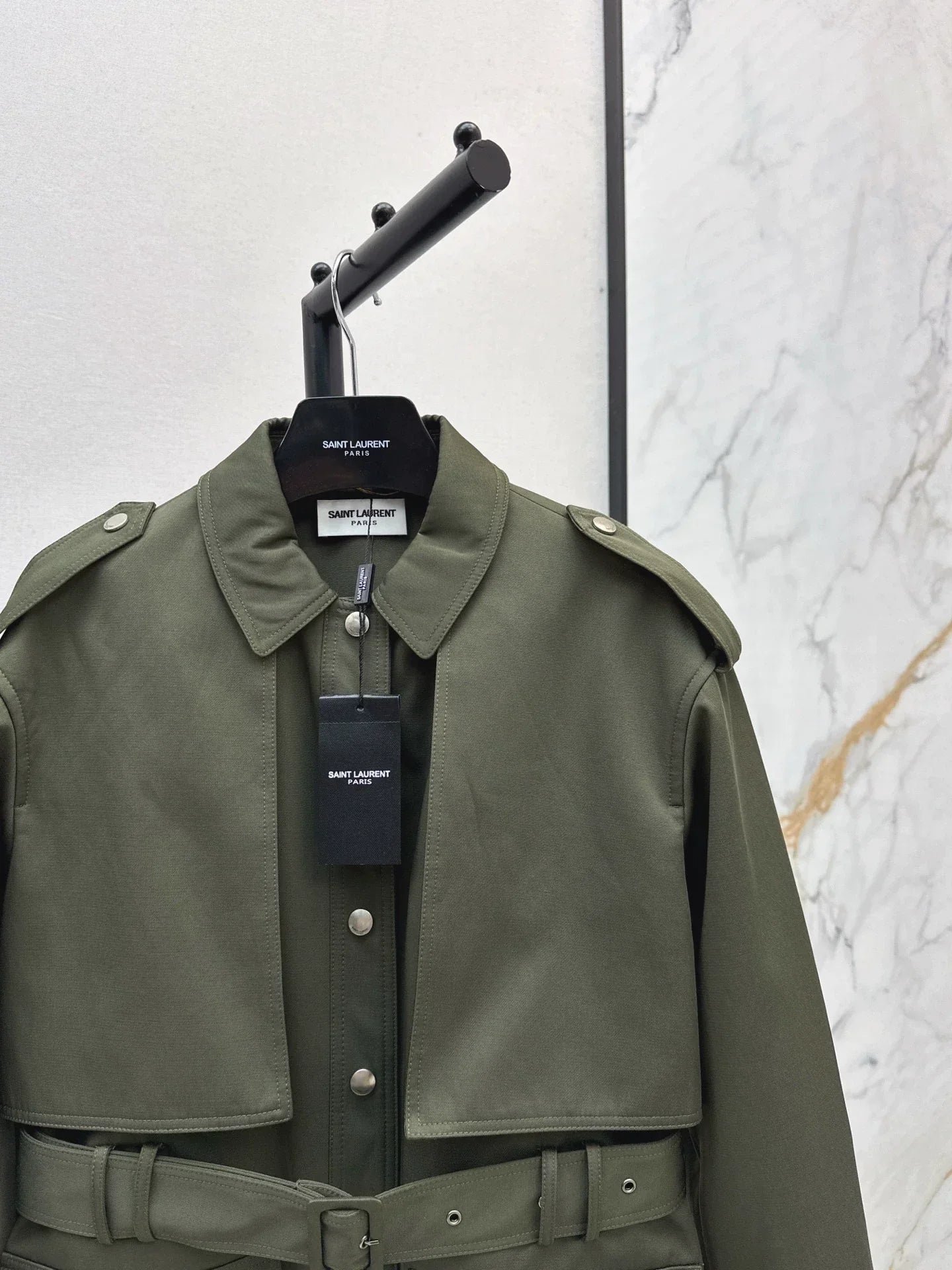 The fabric of the windbreaker has a great sense of stiffness and texture. The online gray green color is very high-end and will not collide. Whether it is commuting or daily life, the simple and comfortable cut with a high-end silhouette is just right, paired with a belt to easily hide meat