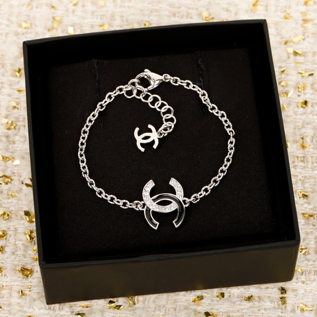 A beautiful series! First come, first served, buy it now, I love it so much, a must-have classic double C bracelet, half diamond and half drop of oil splicing also added letter logo decoration, exquisite degree directly pulled to the maximum Simple atmosphere and versatile, classic timeless