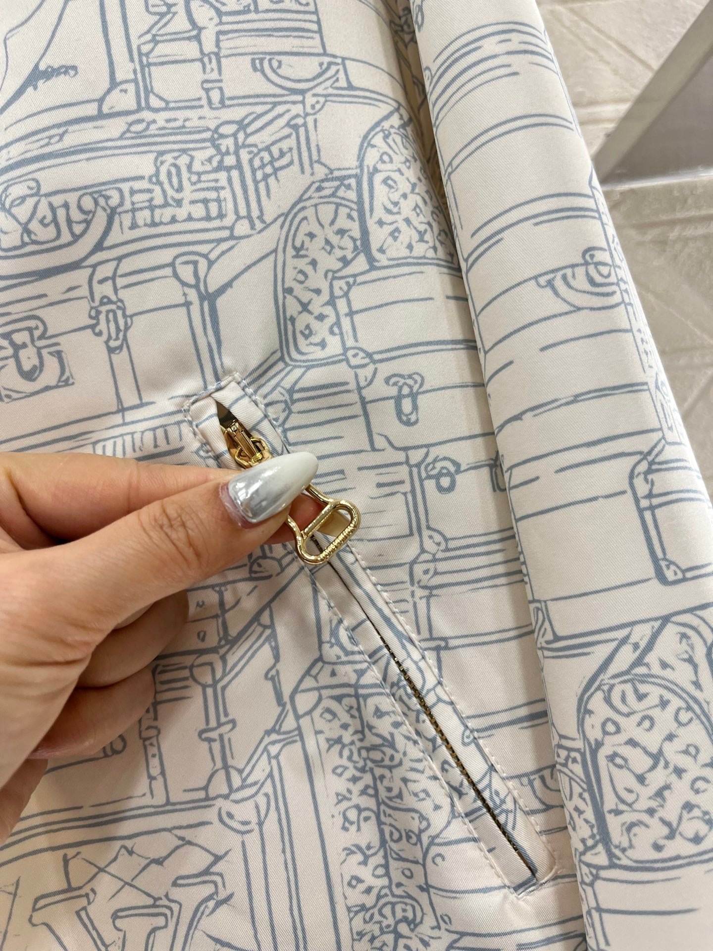 Imported thick twill thick material texture gloss, vertical and stylish zipper flight jacket jacket with double-sided design, one side using clover letter elements as the base color, one side embellished with hand drawn sketches, leather box letter printing, gorgeous visual effect full of personality and creativity, matched with leather buckle details, brand high-end design, no matter how it is matched, it is fashionable, threaded, wrapped, elastic and adjustable, more casual and flexible 🉑 Meet various needs and match with fashionable trends