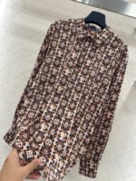 Made from imported silk, this shirt boasts a luxurious sheen and feels comfortable against the skin. The relaxed fit and collared design, combined with the classic monogram print, perfectly blend retro and modern styles. The all-over brown monogram print is eye-catching and fashionable, while the lightweight fabric drapes beautifully. The loose fit exudes a casual and relaxed vibe. Whether worn alone for a relaxed look or layered under a knitted vest for added depth, it effortlessly achieves a sophisticated feel, making it a versatile and essential everyday piece.
