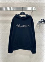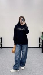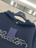 Made of 100% cotton, this high-quality sweatshirt is comfortable and easy to wear. The hooded, loose-fitting design features an embroidered letter logo on the chest, outlined with beads and sequins for a richer, more three-dimensional look. The brushed fleece lining with pockets makes it unisex, exuding a strong, masculine vibe and perfect for a chic, gender-neutral style