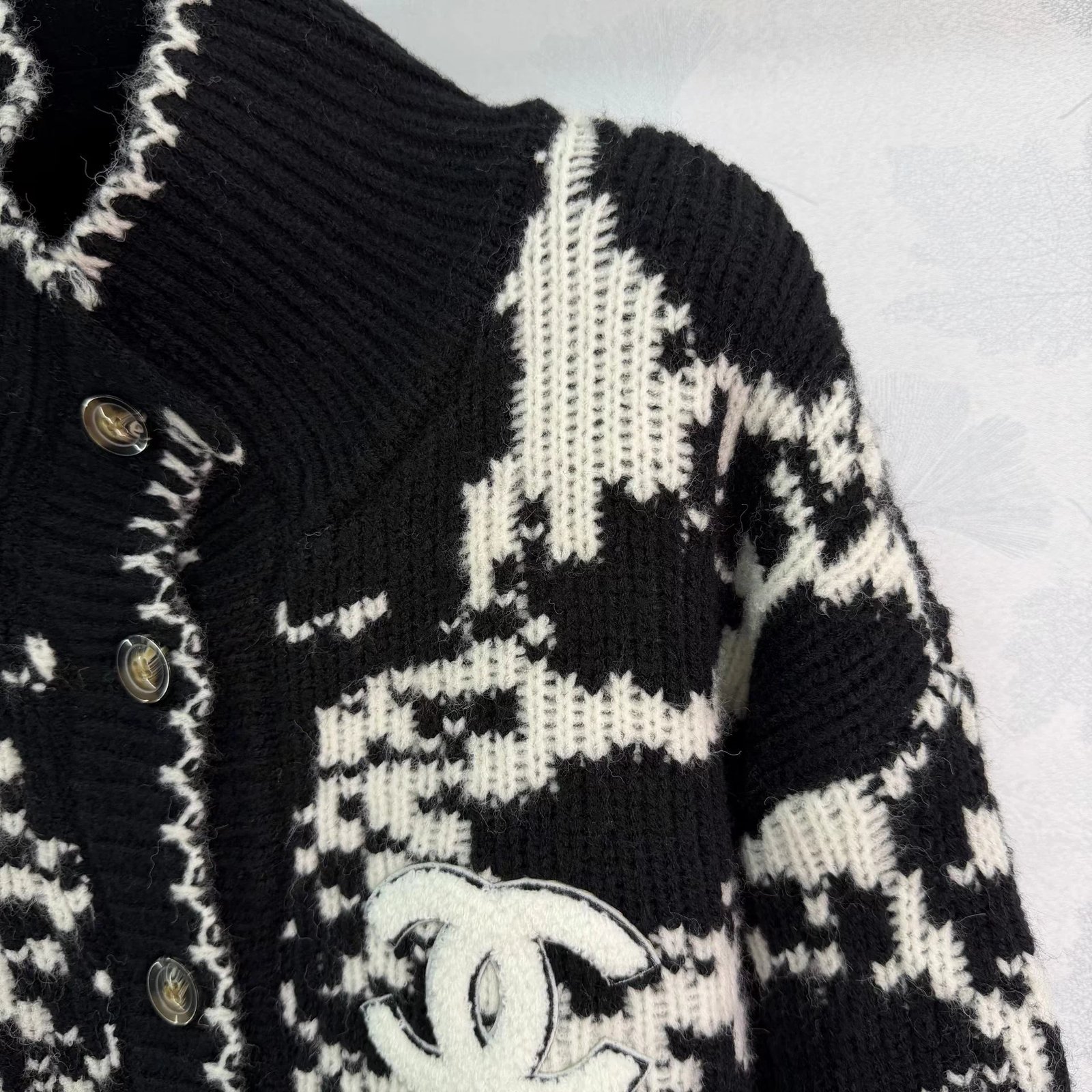 Black and white jacquard cardigan