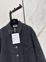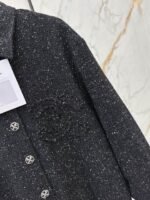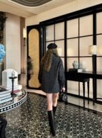White yarn accents add a touch of understated sophistication. The double C embroidery on the front is highly recognizable, and the metal button details are impeccable. The relaxed fit is perfect for autumn and winter, providing warmth and style. It pairs effortlessly with skirts or trousers, easily switching between elegant and chic looks.