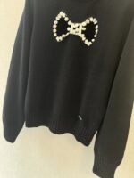 Round neck design, hollowed out bow decoration on the chest, lace embellishment with strong three-dimensional effect, and elegant double C logo embellishment on the hem.