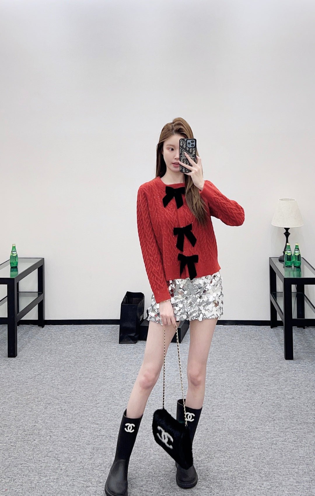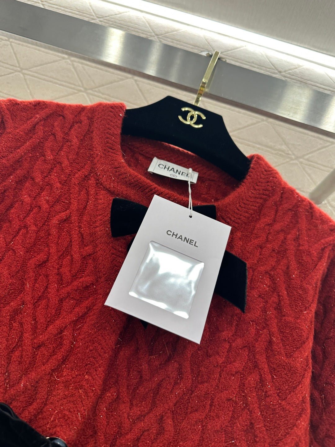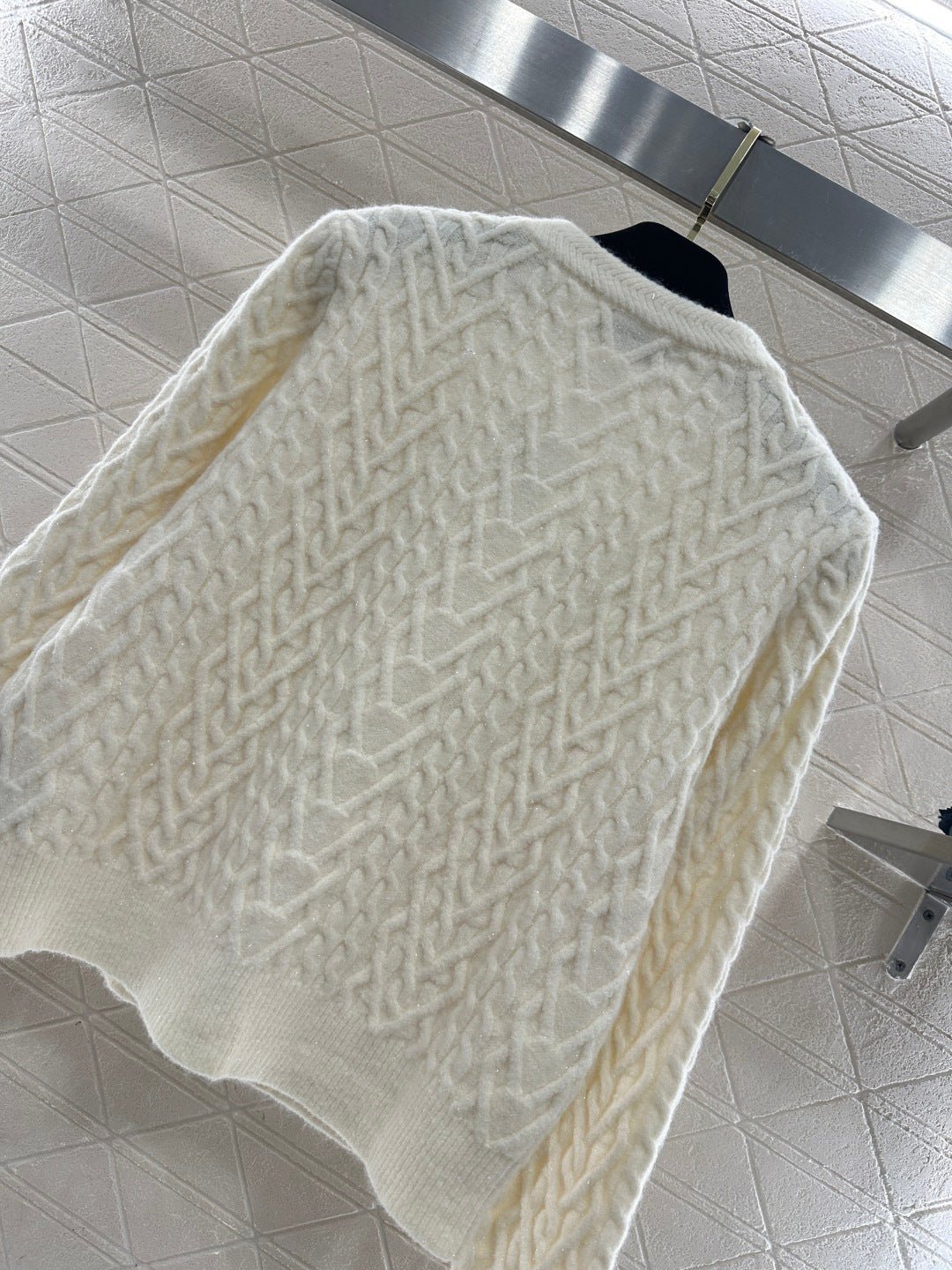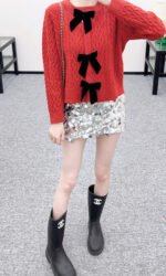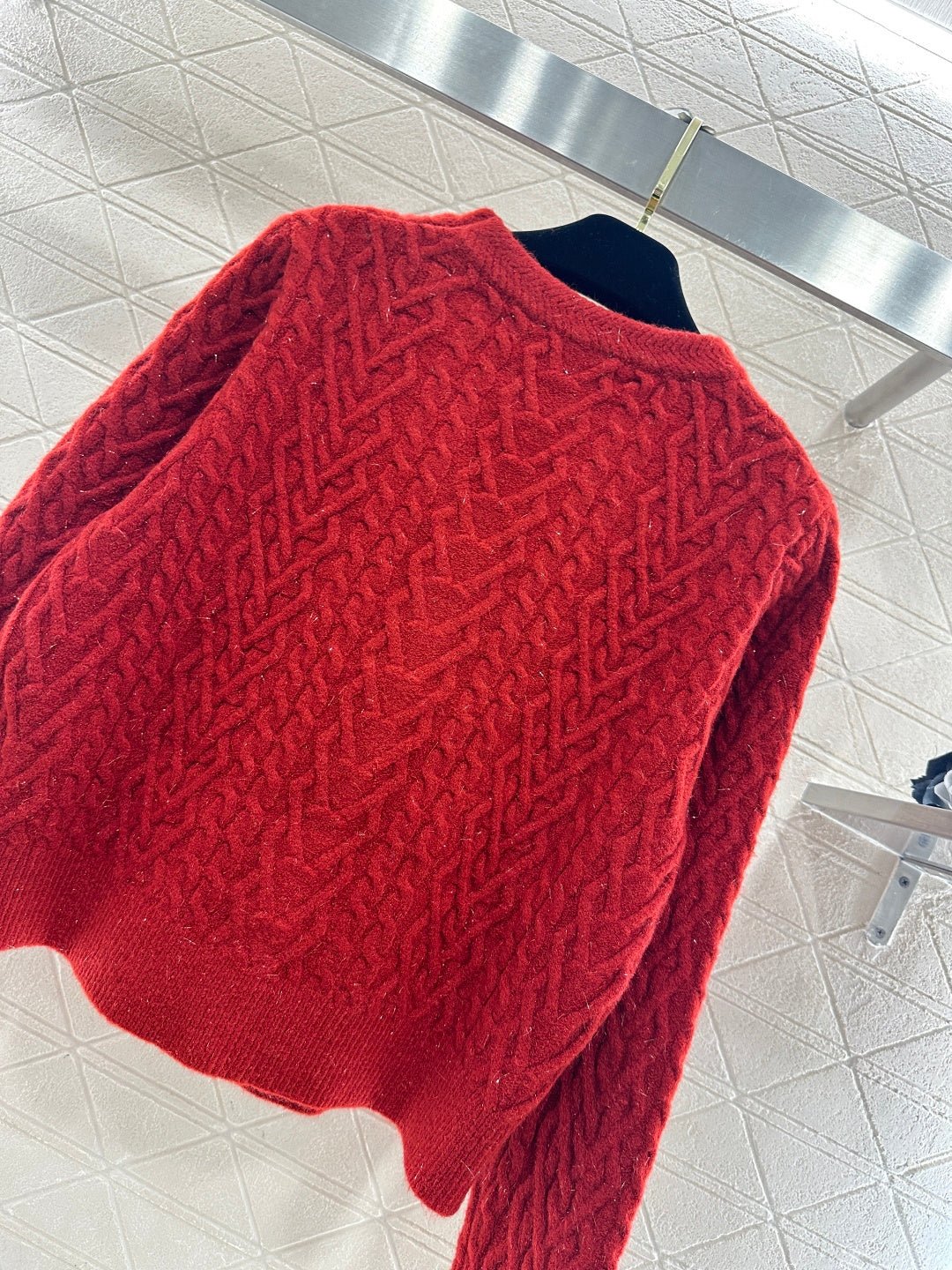 Crafted from wool yarn, this cardigan boasts a delicate texture and comfortable wear. The bow-tie design perfectly embodies a sweet French style! The off-white is gentle and pure, while the burgundy is rich and flattering. The three-dimensional cable knit texture adds a touch of sophistication, and the black velvet bow embellishments add a sweet and energetic yet refined touch. The soft, comfortable wool fabric feels great against the skin, and the regular fit is both flattering and casual. Whether layered under a camisole or worn alone, it effortlessly creates an elegant and sweet sophisticated look – a true wardrobe treasure.