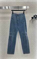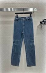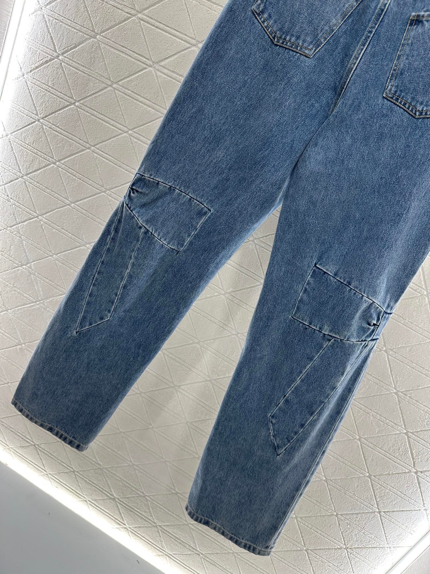 Twill cotton denim material, multiple washings, presenting a crisp texture, denim vest long pants set, vest bow fits the chest line, perfect for details, durable and high-end upper body, matched with straight leg pants of the same series, decorated with bow elements, the brand’s high-end design is fully stretched, and it is fashionable and eye-catching when worn as a set or alone, suitable for all seasons.