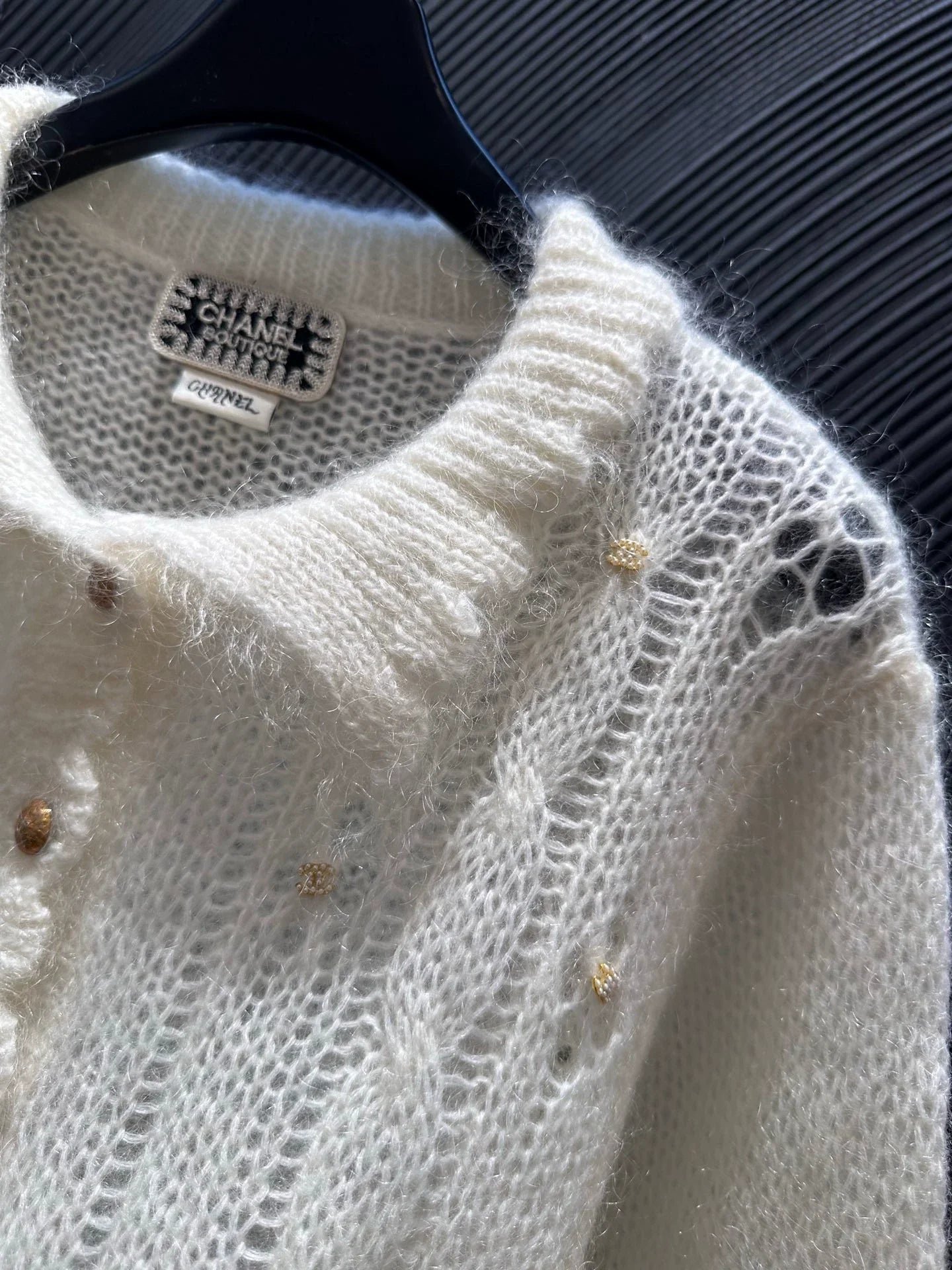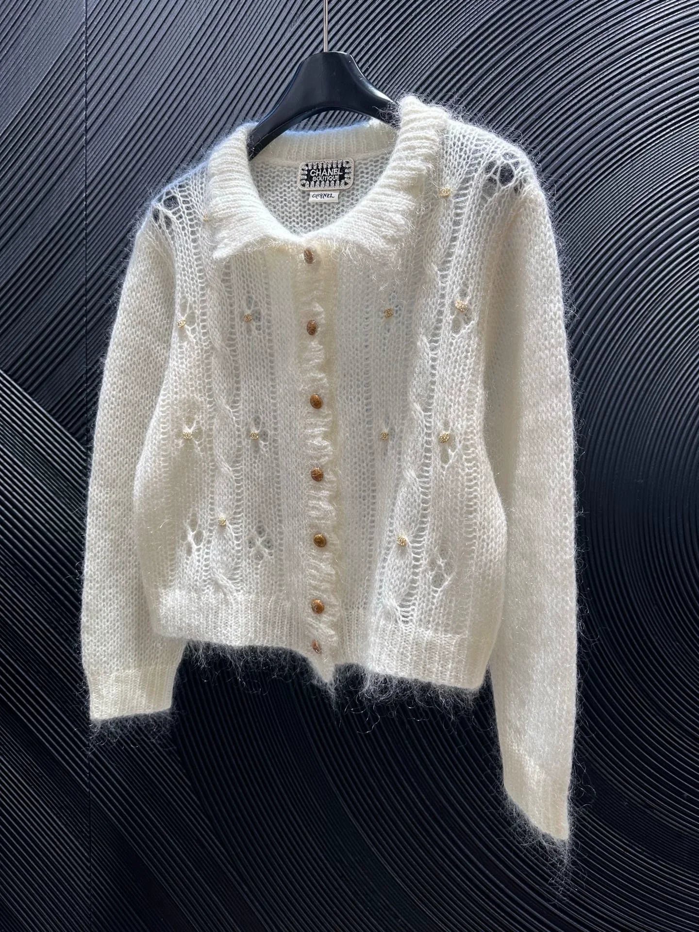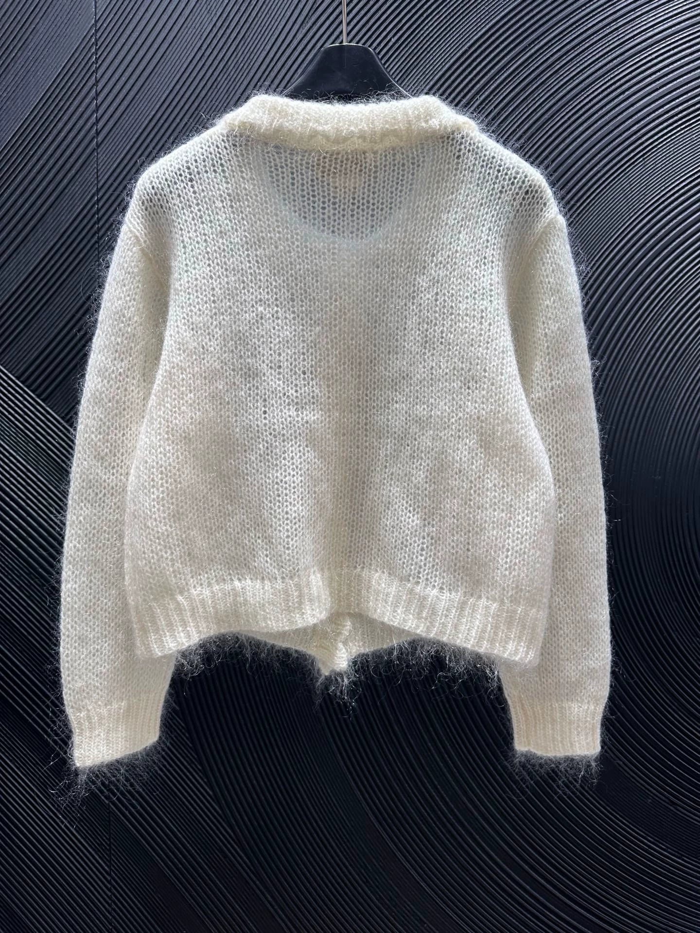 Buckle nail bead lapel sweater