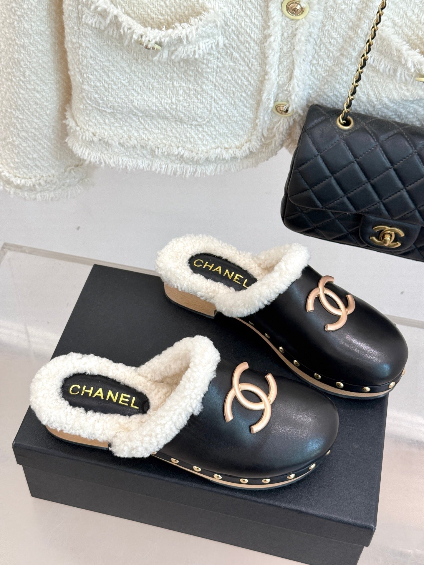 Lambswool lining and footrests.