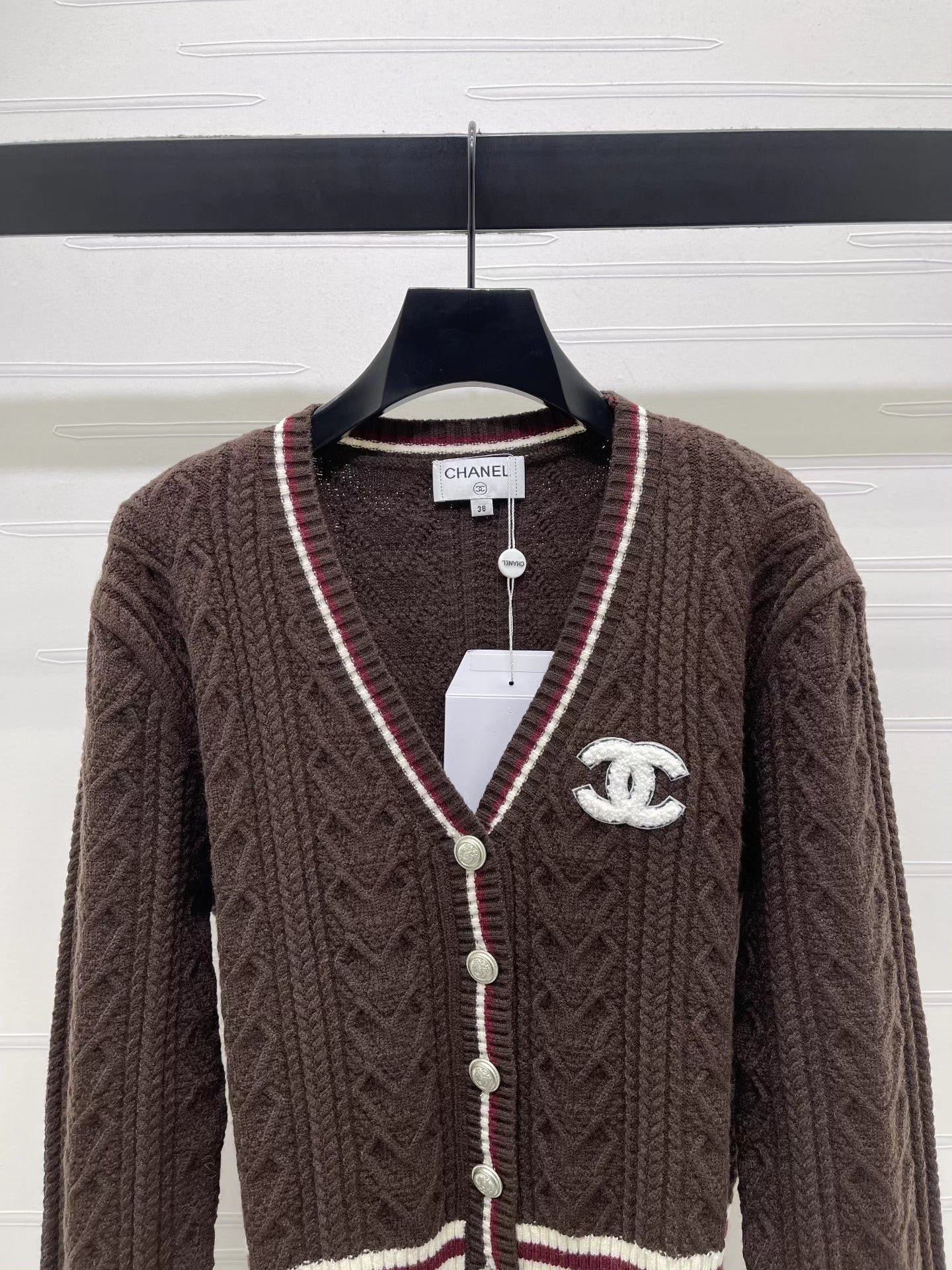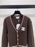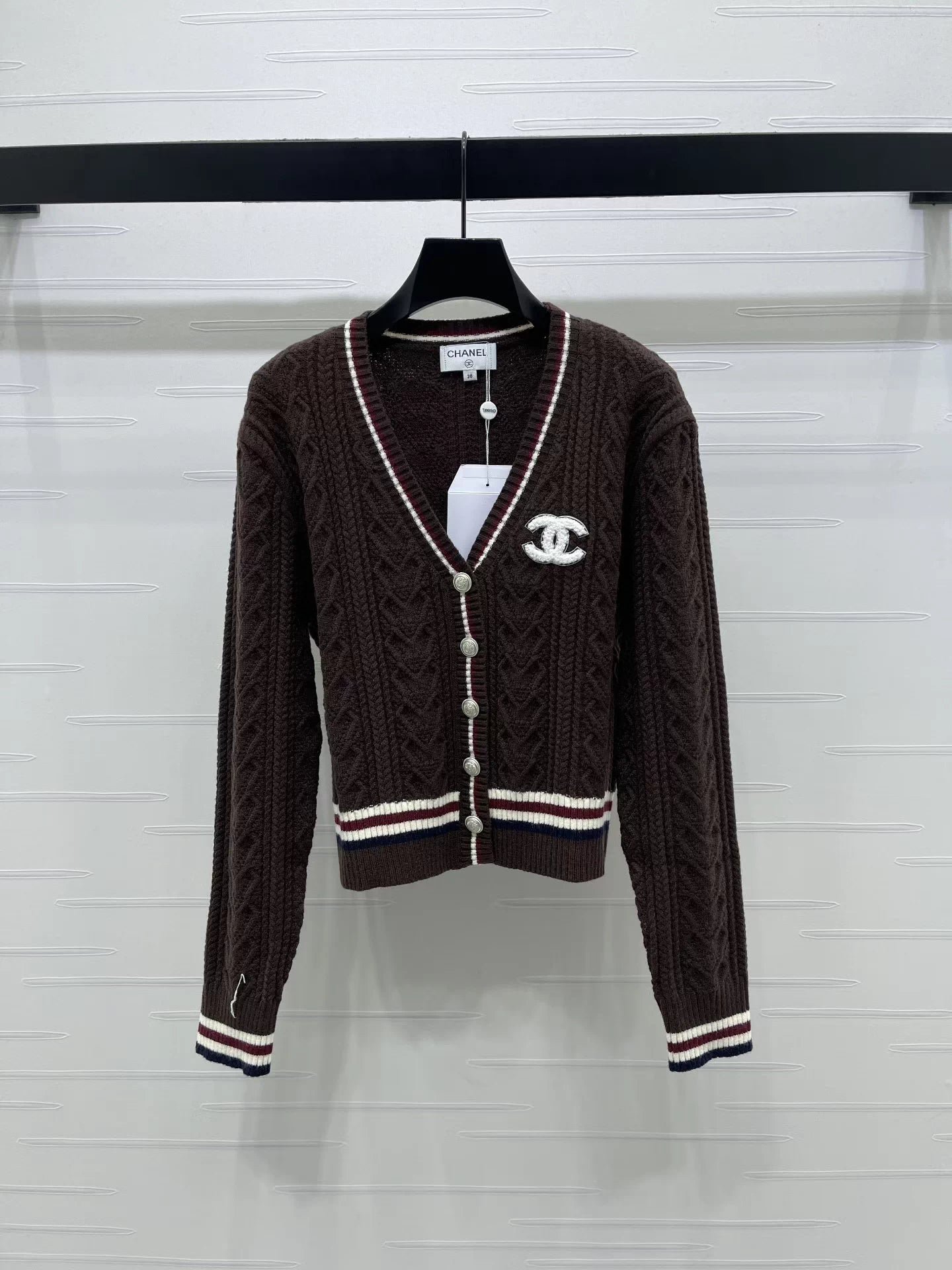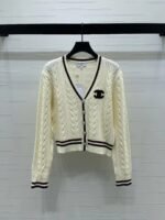 Made from a wool blend knit fabric, this cardigan is comfortable and soft. It features an all-over vertical cable knit design, contrasting ribbed stripes on the neckline, cuffs, and hem for added dimension, and a signature embroidered logo on the chest.