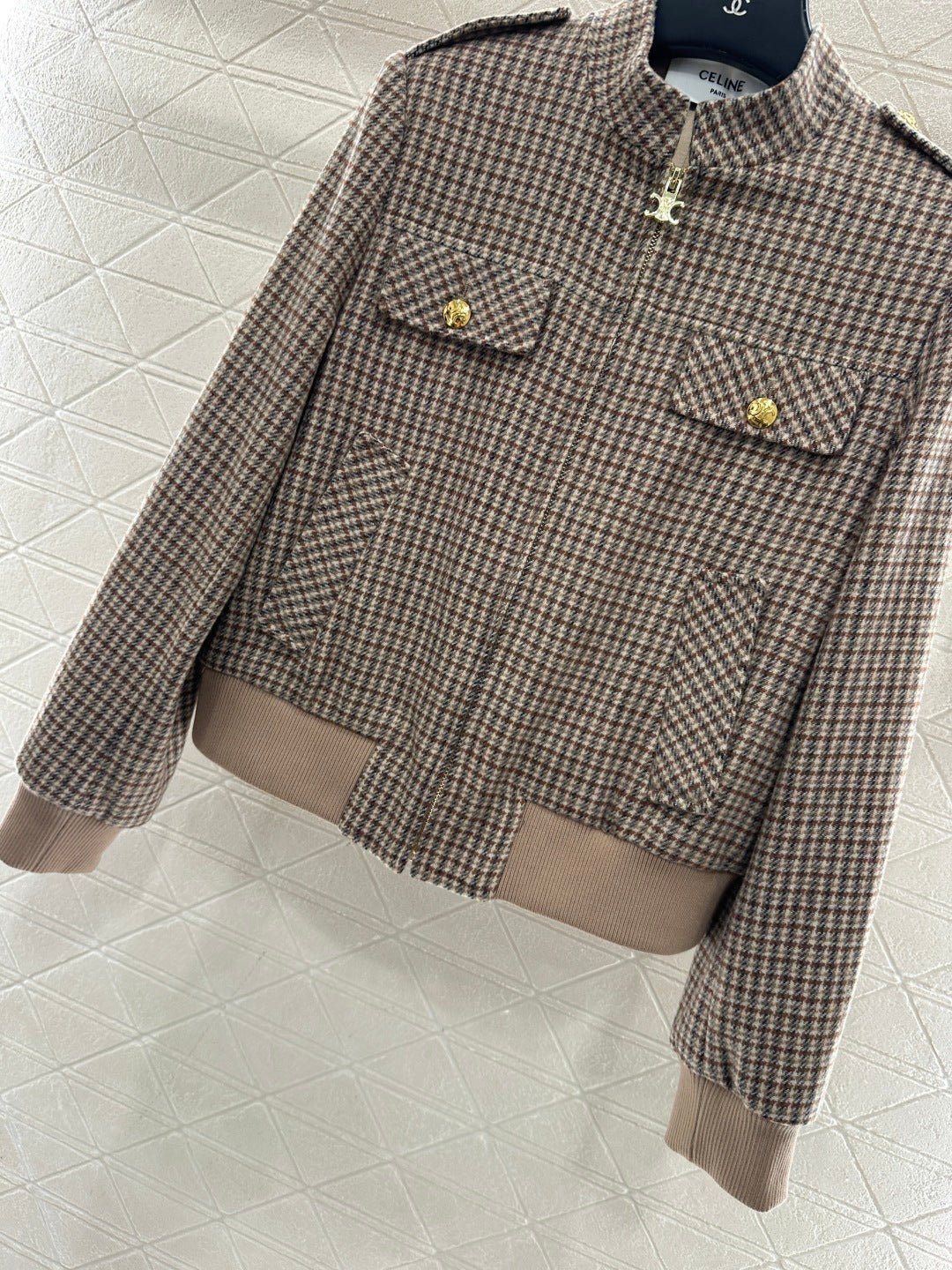 plaid stand-up collar jacket