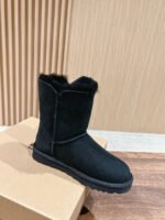 Classic wooden buckle mid-calf snow boots