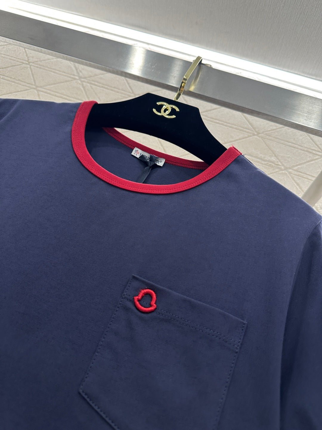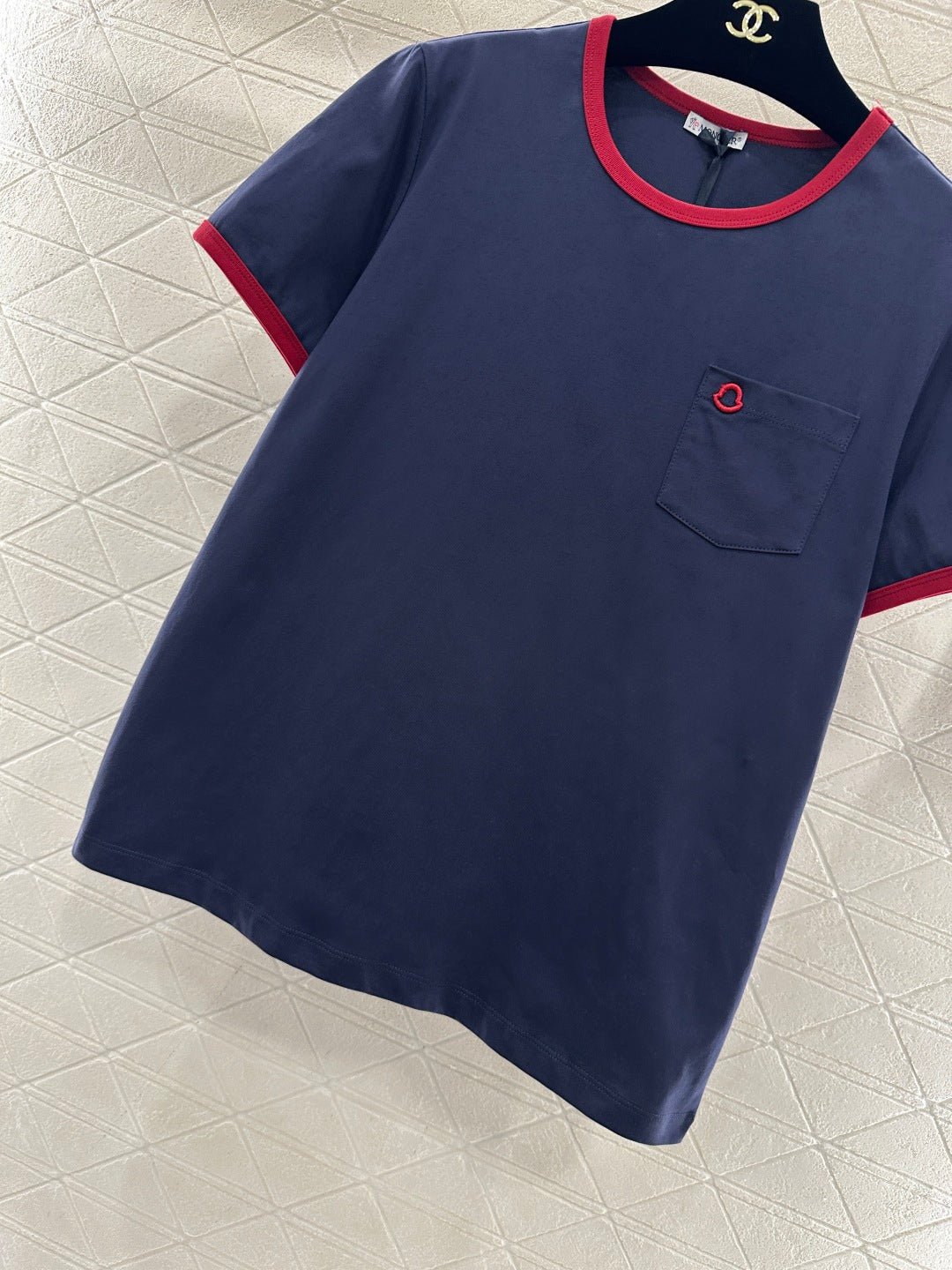 Made of 100% cotton, soft and skin-friendly, comfortable and stylish, this regular short-sleeved shirt features ribbed trim at the neckline and cuffs. The overall color scheme is contrasting, with an embroidered shield element adorning the chest pocket and a matching brand logo patch on the sleeves, creating a rich and stylish look. The regular fit is forgiving and easy to wear for everyday outings or parties.