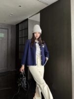 Made of soft and warm wool, this cardigan features a V-neck and metal buttons for exquisite detail. The camellia pattern adds a touch of Chinese style, making it versatile for both festive occasions and everyday wear. The relaxed fit pairs well with jeans and skirts, creating a slimming and elegant look. The red hue is perfect for New Year’s Day and other celebratory occasions.