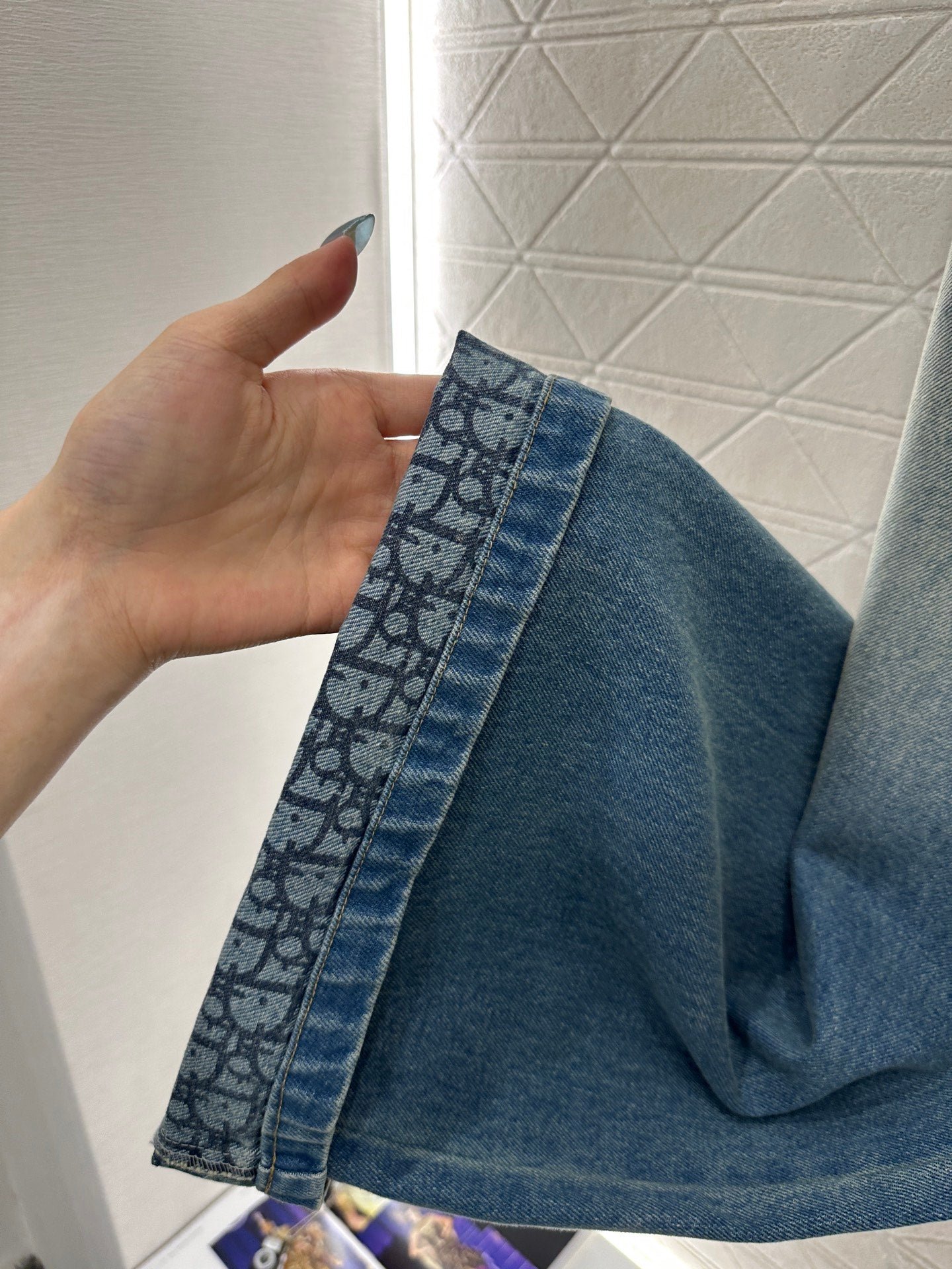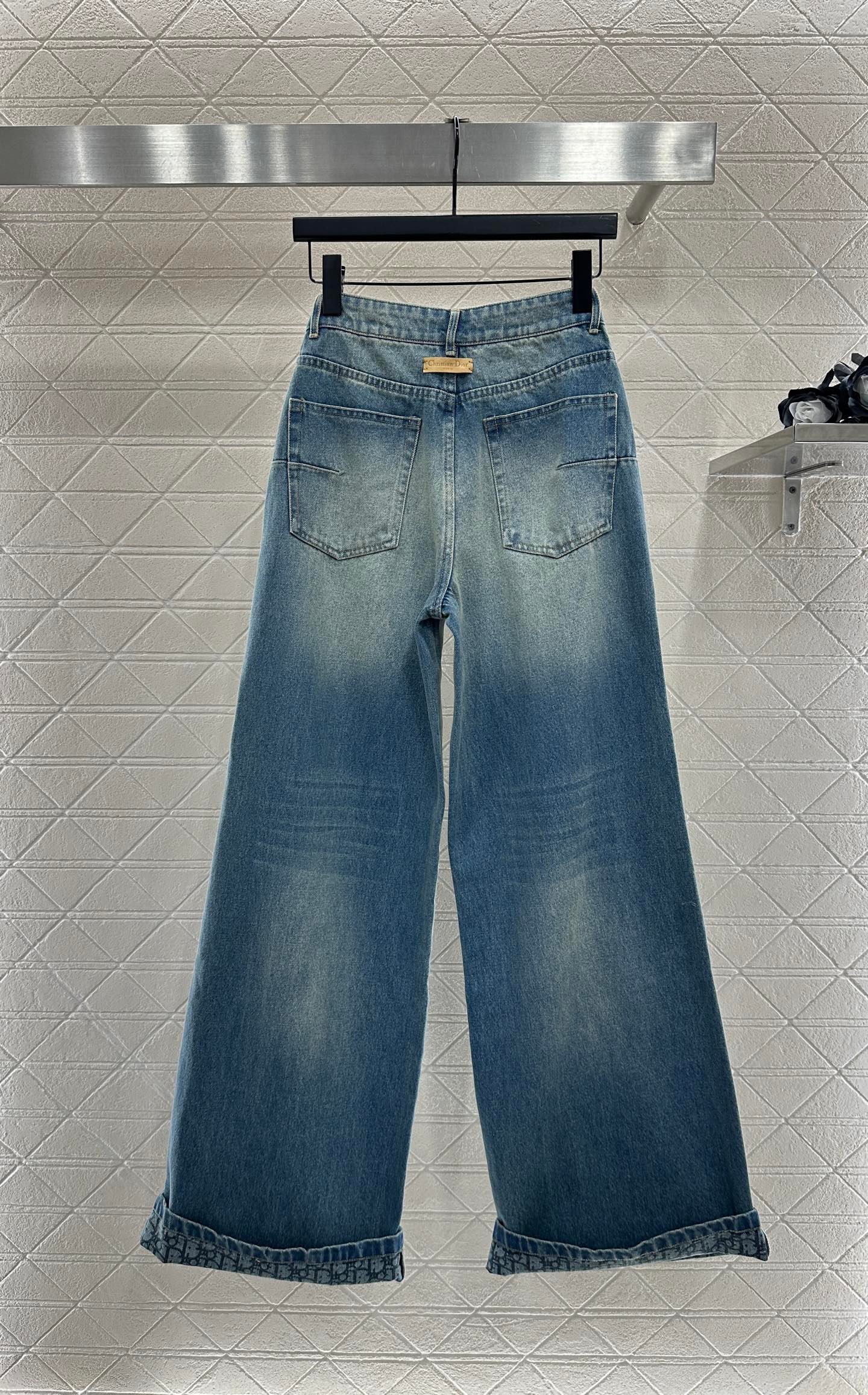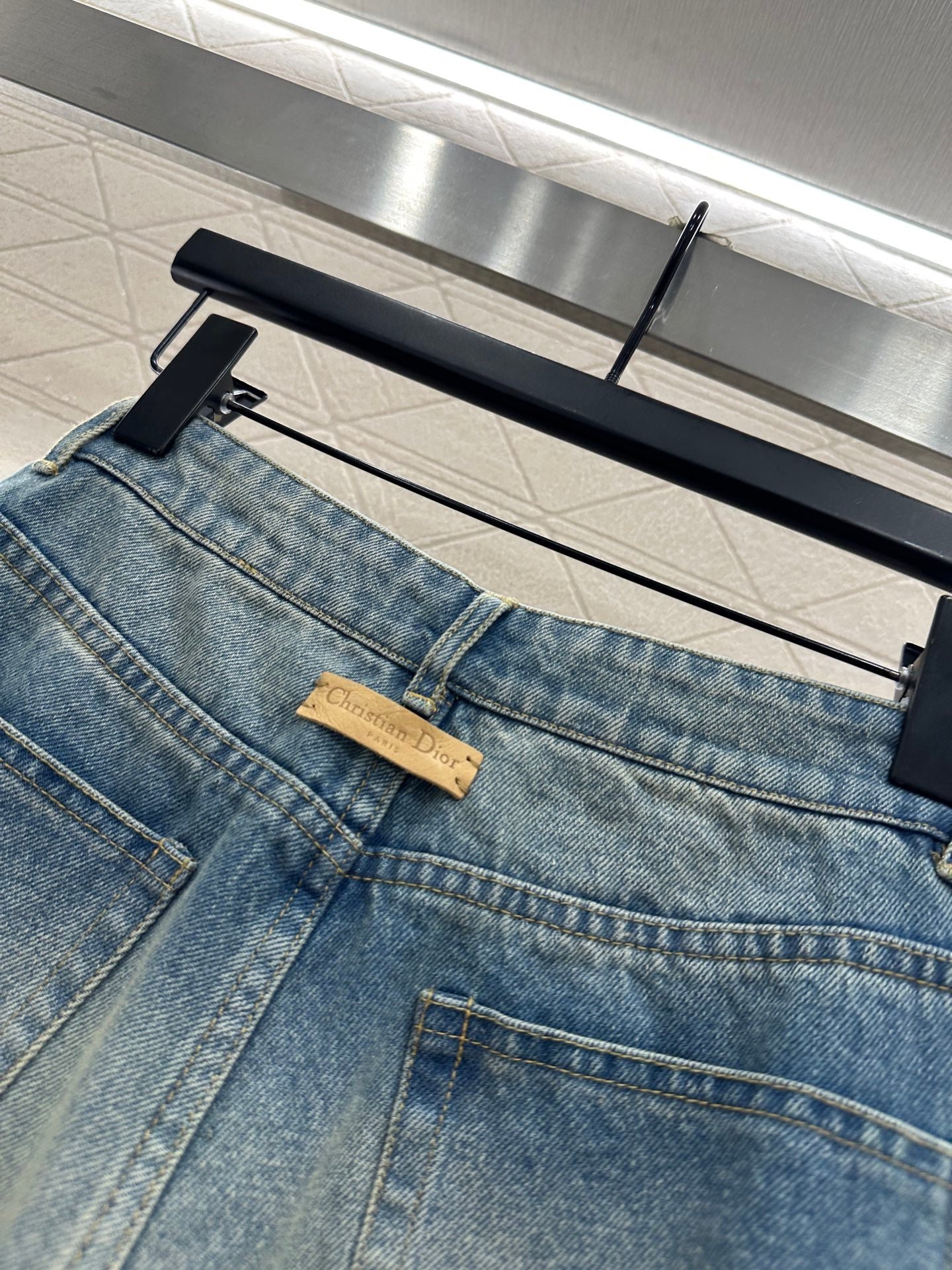 Twill cotton denim material, delicate texture, stylish dressing, wide leg pants version, evenly dyed with enzyme water washing throughout, retro deep blue ➕ Crafted with a distressed and white pleated texture, versatile and durable. The back waist is embellished with letter leather tags, which echo the letters printed on the lining. The folding design highlights the style and is more eye-catching and fashionable. The wide leg design enhances the leg shape, making it easy to wear and lazy, giving it a casual and stylish look.