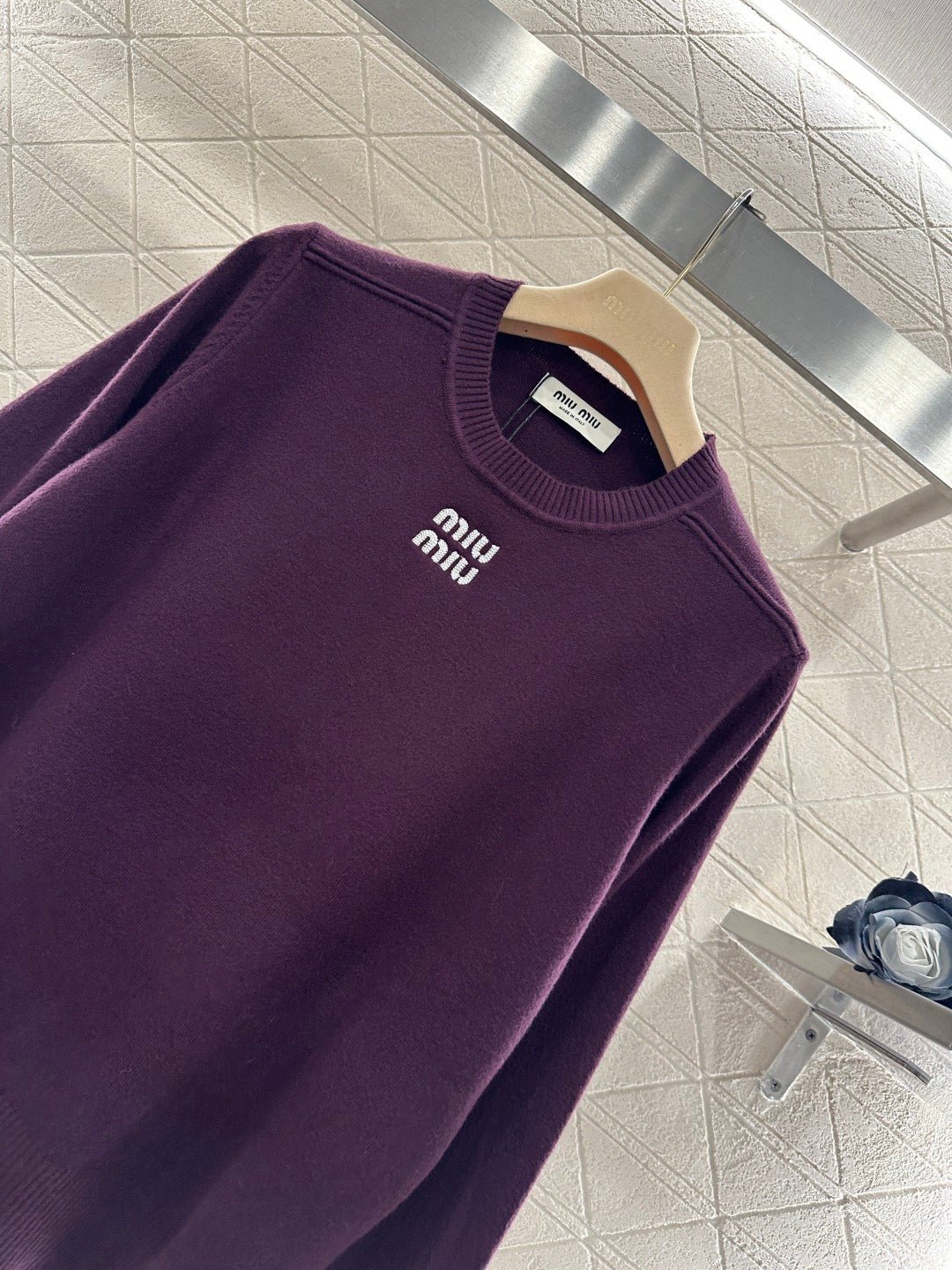 Made from wool yarn, this sweater has a delicate texture and is comfortable to wear. It features a round neck and is available in three colors, perfectly capturing the autumn/winter vibe. The grape purple is rich and retro, the burgundy is vibrant and bright, and the classic black is understated and versatile. The simple logo embroidery adds a touch of sweet and cool girl charm. It can be easily paired with anything to create a relaxed yet sophisticated look, making you appear more relaxed and stylish.