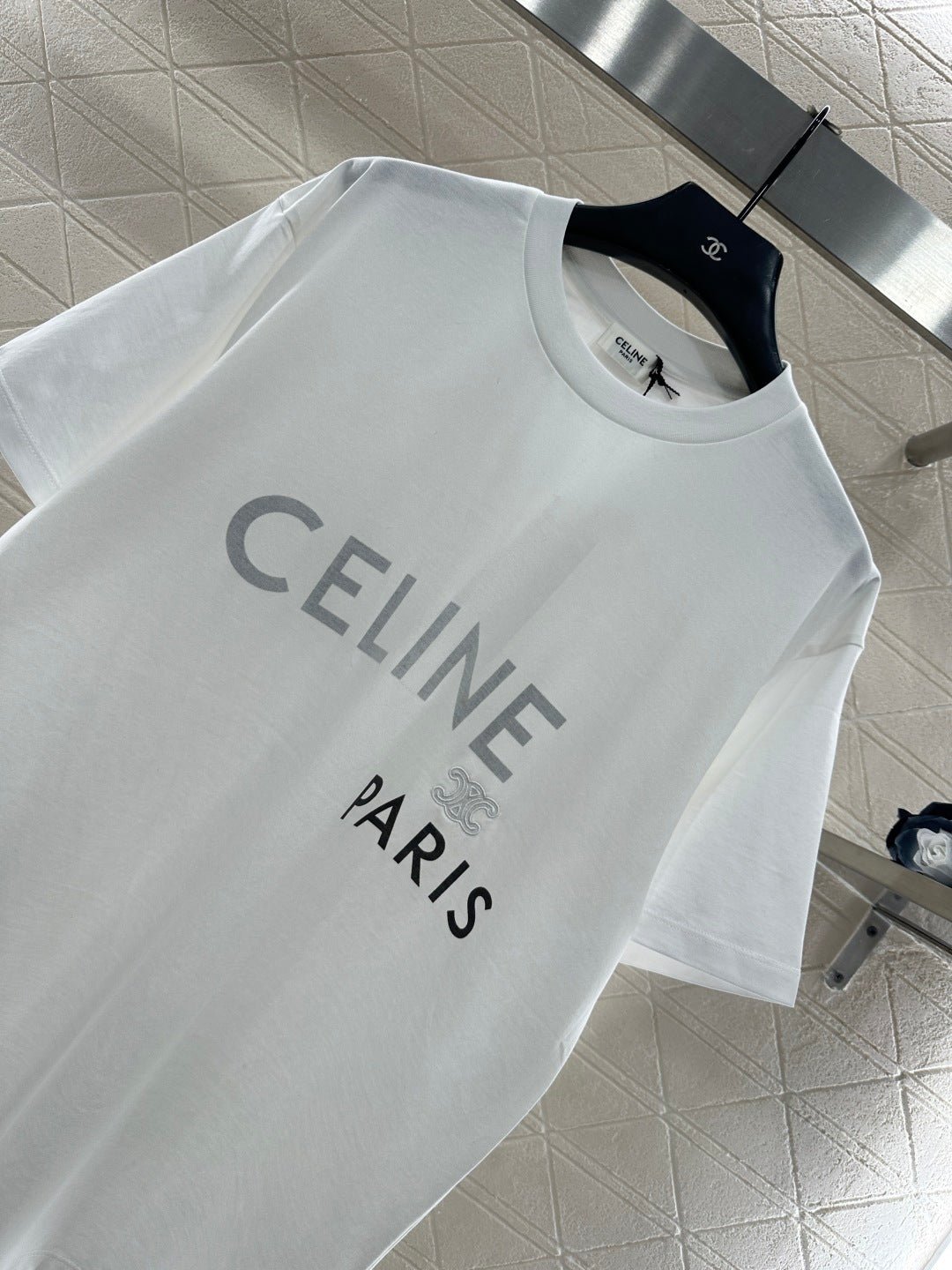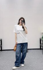 Made from 100% cotton, this breathable and comfortable T-shirt boasts a premium feel. The loose-fitting short-sleeved design highlights the brand’s style. The high-quality cotton fabric drapes beautifully, creating a slimming and fashionable look. The iconic Arc de Triomphe emblem is embroidered on the chest, echoing the letter logo print. The contrasting colors and layered design enhance brand recognition, instantly elevating the overall fashionable and sophisticated feel.