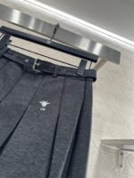 Belted midi pleated skirt