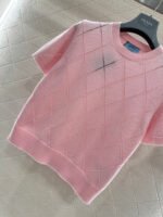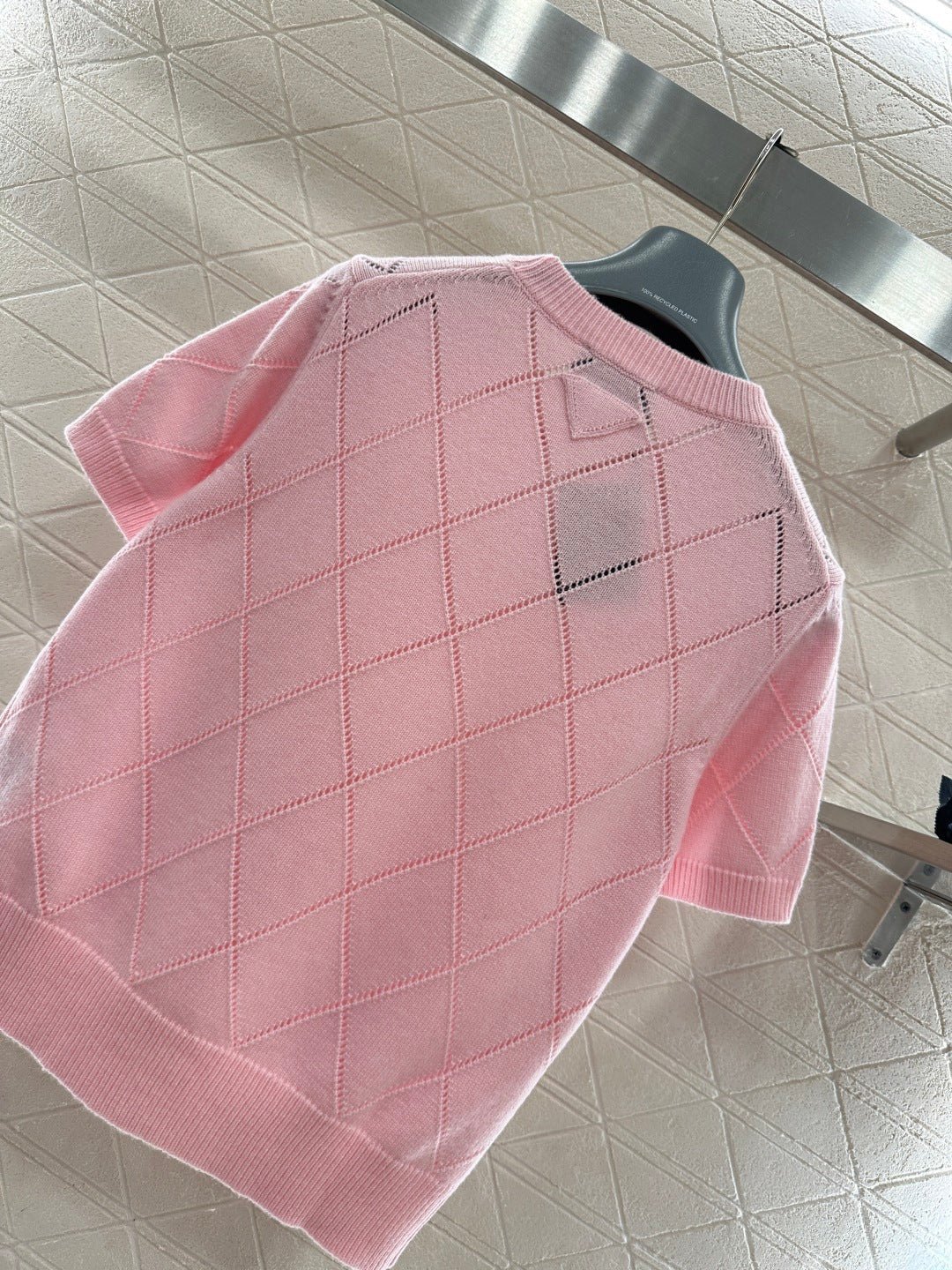 Made from wool yarn, this garment is comfortable to wear and has a luxurious feel. The round neck knit short sleeves feature a delicate and breathable diamond-patterned openwork design. The soft pink hue makes the skin look incredibly fair. The simple round neck design is versatile and suits everyone. It creates a refreshing and youthful look, and it also adds a touch of sophistication when layered with a suit or cardigan. It’s a perfect piece for a sweet and girly vibe. The regular fit makes it a youthful and playful everyday outfit.