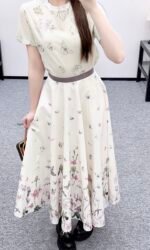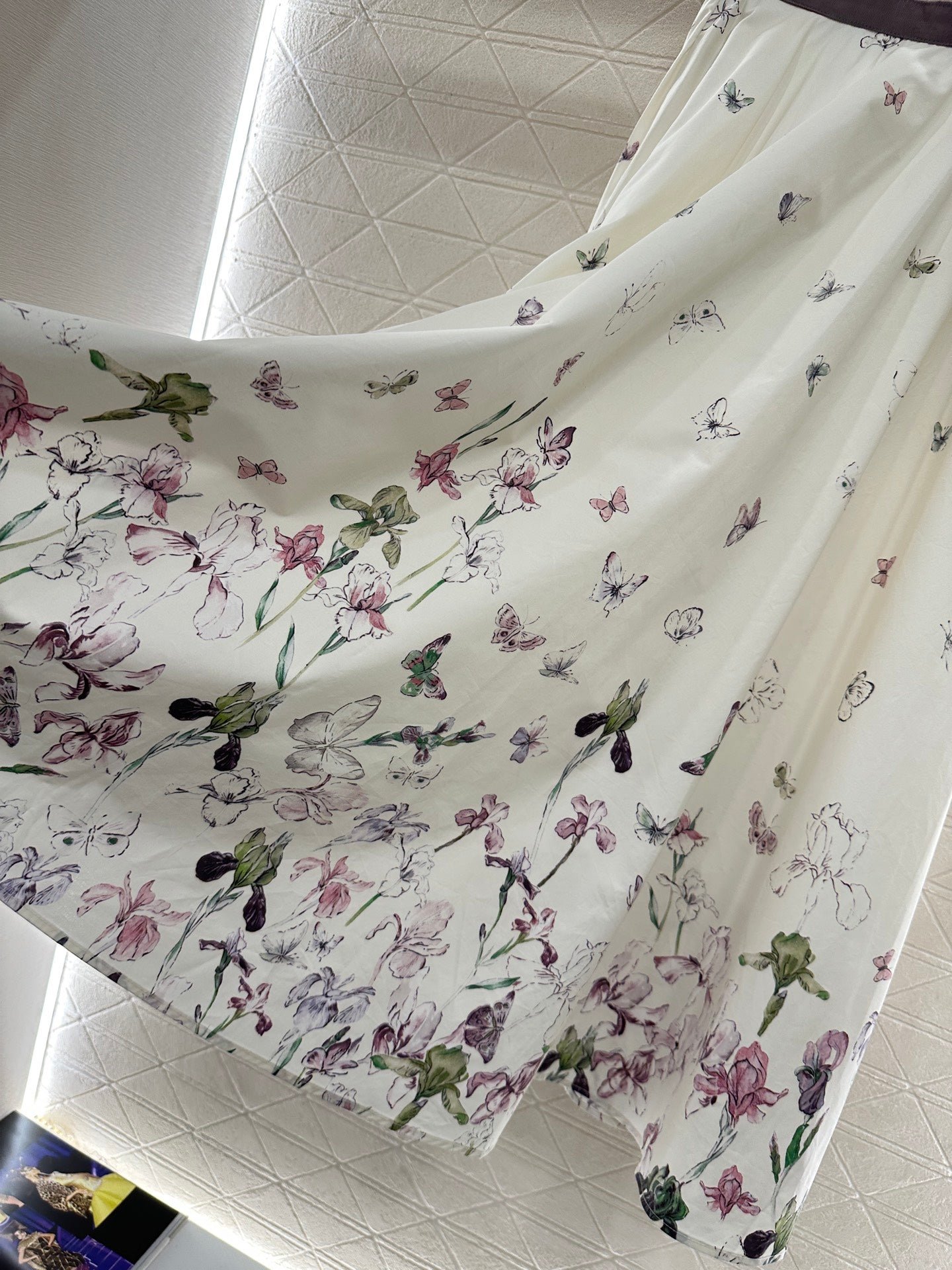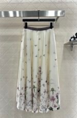 Made of all cotton material, the texture is smooth and comfortable, moisture absorbing and breathable. The high waisted umbrella shaped mid length skirt is cut, with a narrow purple waistband at the waist. The skirt body is covered with a beige base, and colorful flowers are added ➕ Butterfly decoration, sweet and youthful, ample umbrella shaped swing, accommodating and modifying body shape, elegant dressing style, preferred for daily vacations
