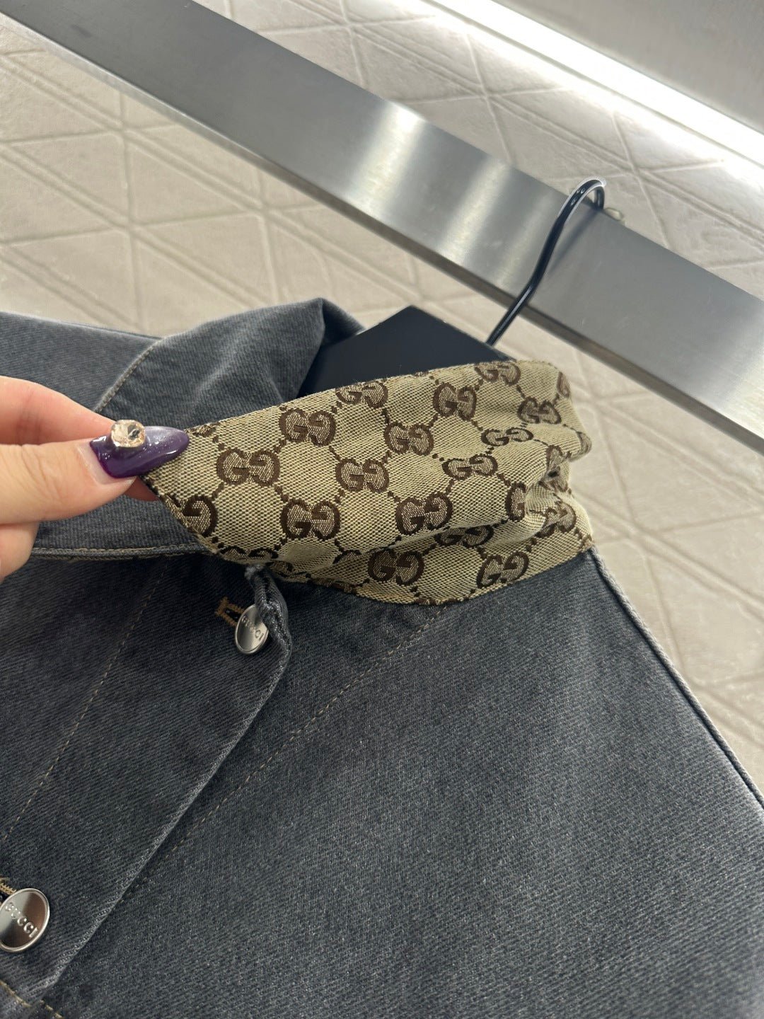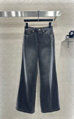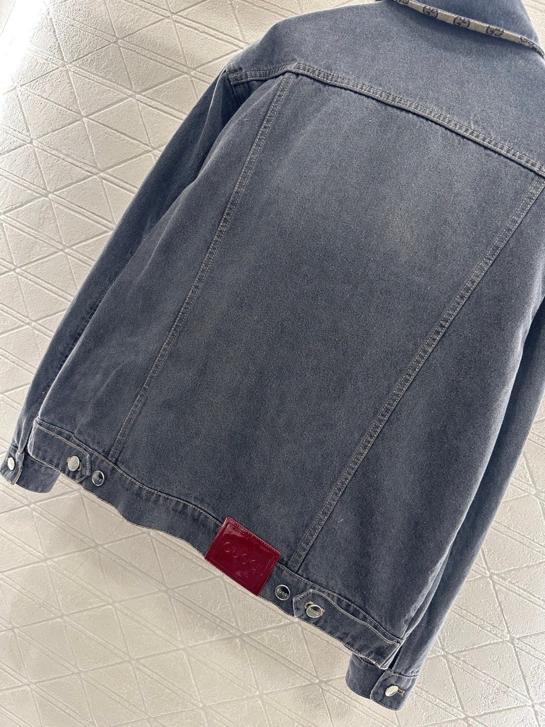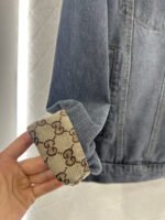 Made of twill cotton denim, this jacket features multiple washes to create a crisp texture. The collared, structured shoulder design and flap pockets complement the classic silhouette, resulting in a sophisticated and timeless look. Symmetrically distributed, naturally transitioning white distressed textures are accented with jacquard double G logos on the inside of the collar and cuffs, adding a touch of high-end style. Pair it with matching straight-leg trousers, featuring a reflective leather logo on the back waistband that echoes the brand’s style. The complete outfit is outstanding and fashionable.