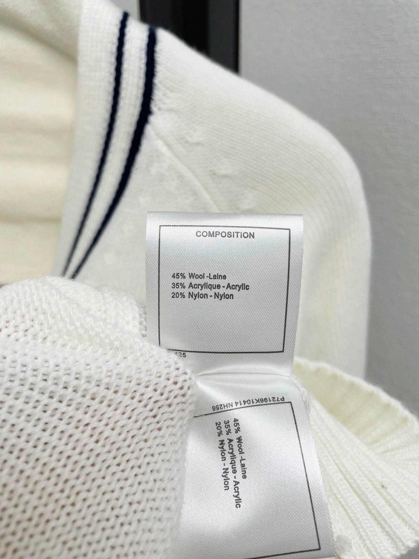 Classic black and white striped design, with three-dimensional embroidered logo on the chest and pockets. The fabric is made of a 45% wool blend, which is soft and comfortable.