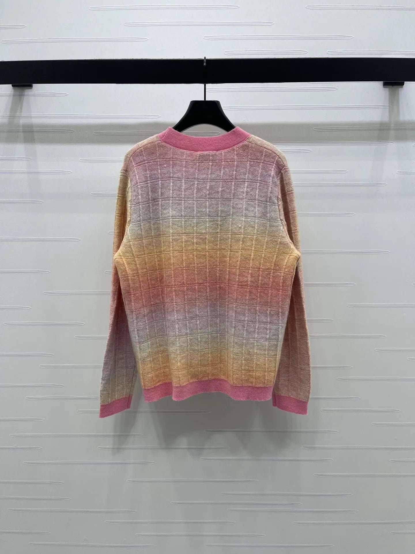 Made of a soft and comfortable wool blend knit, featuring a clear horizontal and vertical ribbed check pattern on the body. Embroidered logo embellishment on the chest.