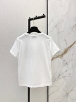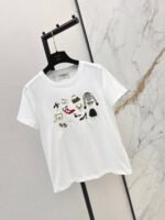 This vintage style features embroidered details of a classic Chanel jacket, mini handbag, and red-soled heels. The exquisite embroidery is layered with hand-sewn beads, creating a delicate and playful look. Made of a silky fabric, the slim fit is incredibly flattering, giving an effortlessly chic and relaxed feel.