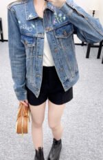 Twill cotton denim material, multiple washings, presenting a crisp texture. The collar and shoulder denim jacket is cut, and the flap pocket is paired with embroidery technology to outline the combination of letter logos ➕ Colorful floral and leaf patterns, youthful and stylish, with pocket logos and front buttons echoing each other, creating a retro and natural neutral and stylish style. Wear whatever you want, it’s fashionable and eye-catching, suitable for all seasons