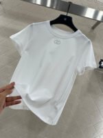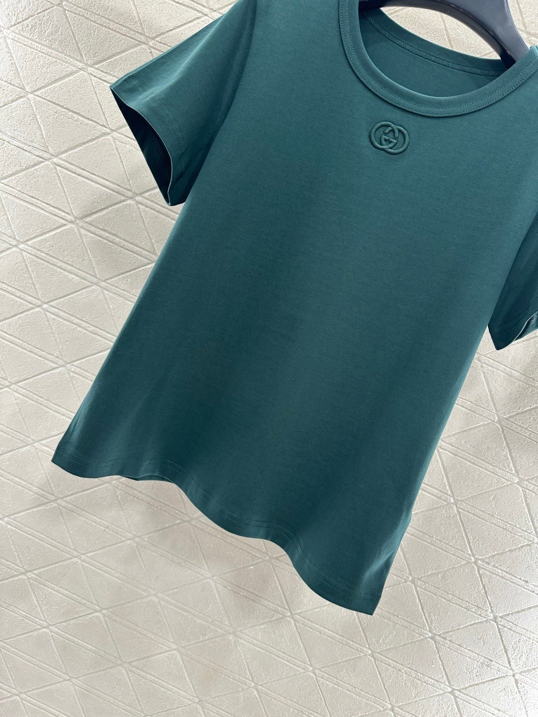 Made of mercerized cotton, this fabric is soft, skin-friendly, comfortable, and stylish. The slim-fit short-sleeved design features a double-ribbed neckline and is of excellent quality. The brand’s double-G logo is embroidered on the chest, adding a touch of sophistication and a flattering, slimming silhouette. It’s a fashionable and chic look.