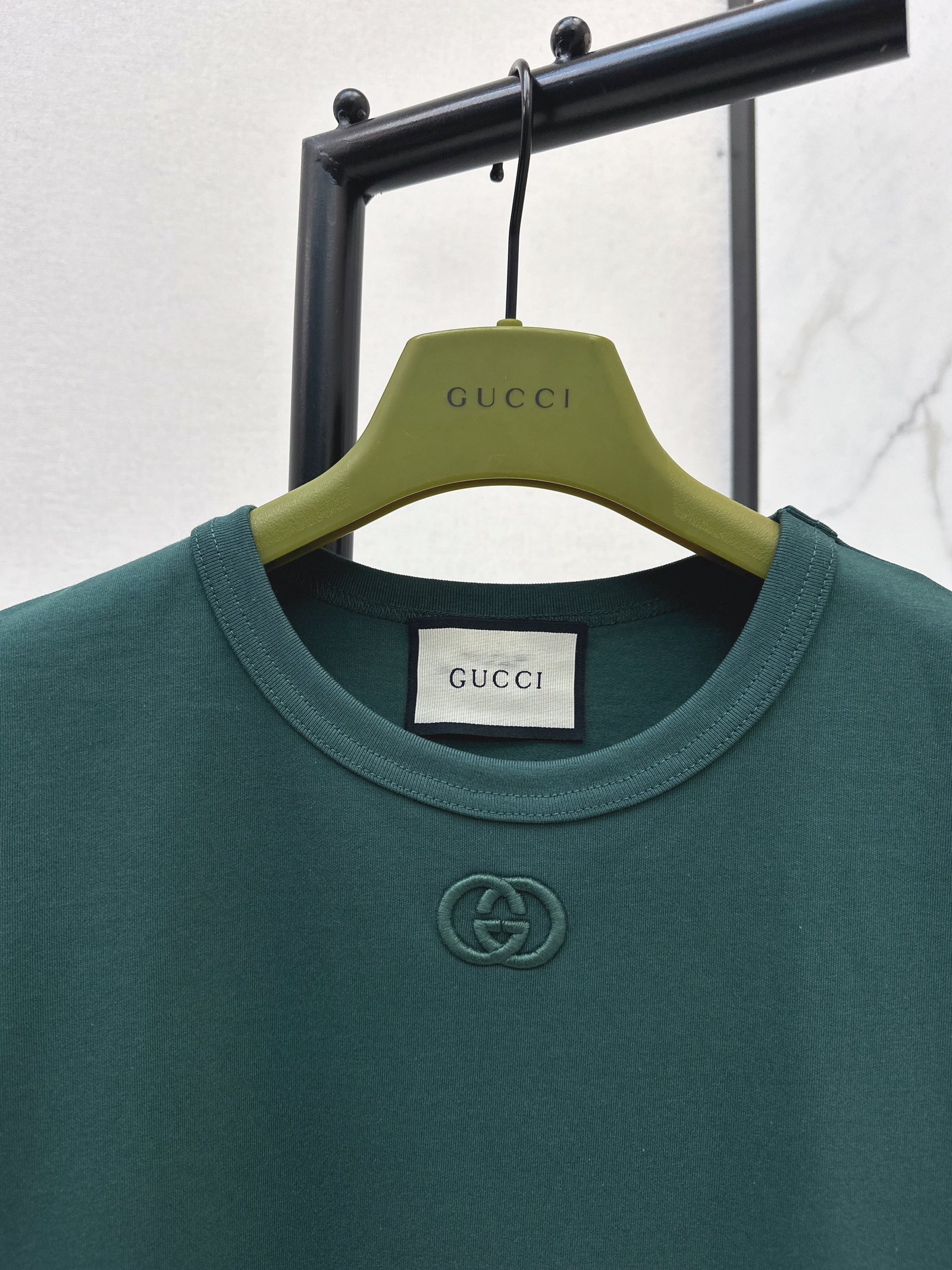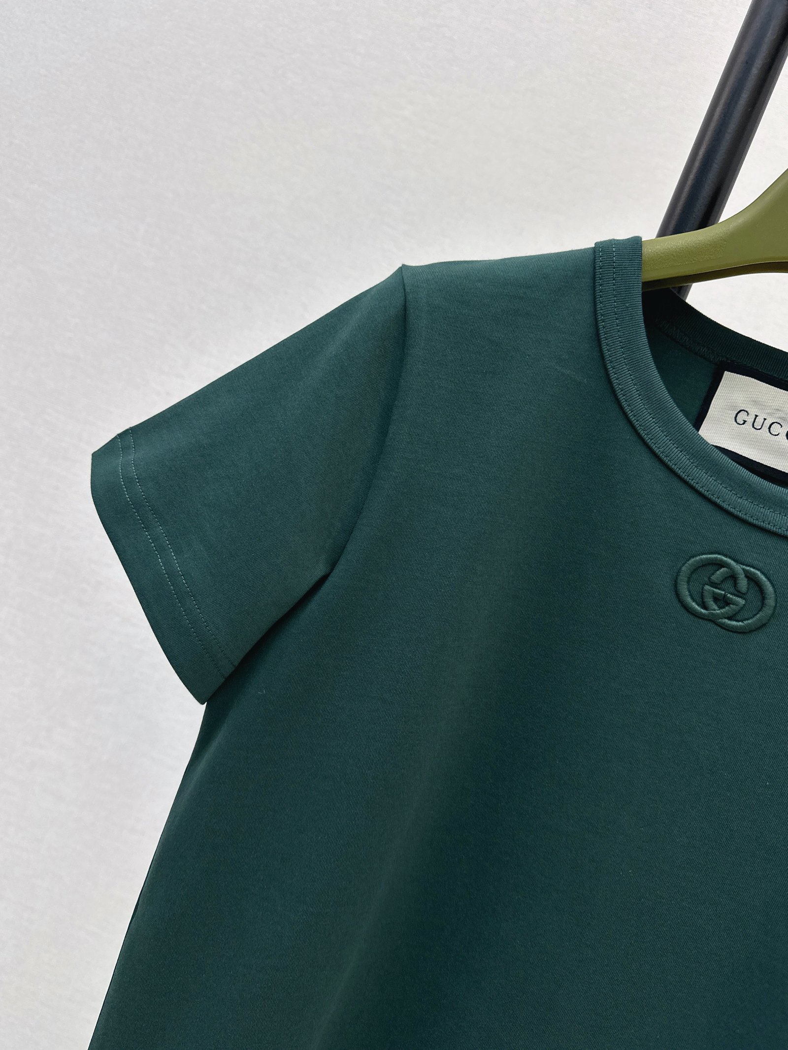 The sophisticated feel of the dark green hue is hidden in every detail. The tonal double G embroidery is understated yet exquisite, with perfectly fine stitching. The neckline edging also shows meticulous attention to detail. This classic style is timeless and very easy to wear. The minimalist and elegant design suits all body types. The small fit is practical and slimming. It looks great worn alone or as a base layer