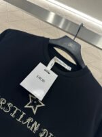 Made of mercerized cotton, breathable and comfortable with a luxurious feel. This classic short-sleeved T-shirt features embroidered sequins and beading to create a five-pointed star ⭐️ and a logo embellishment. The embellishments reflect light beautifully, enhancing brand recognition and adding a distinct layered look. Available in classic black and white, this versatile and stylish T-shirt is perfect for everyday wear.