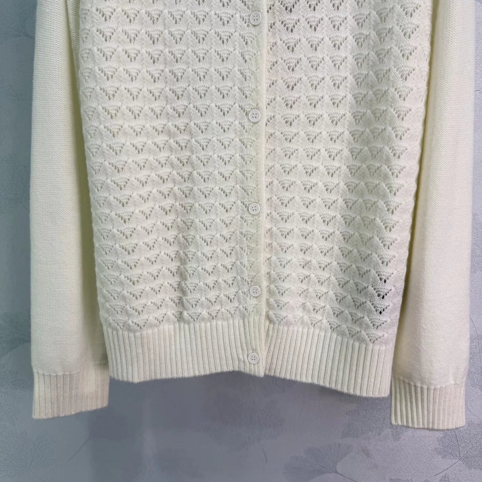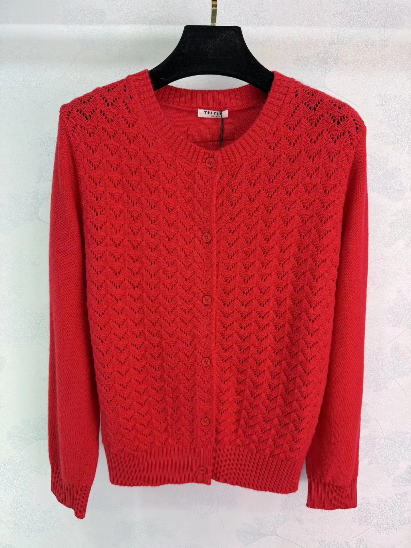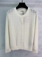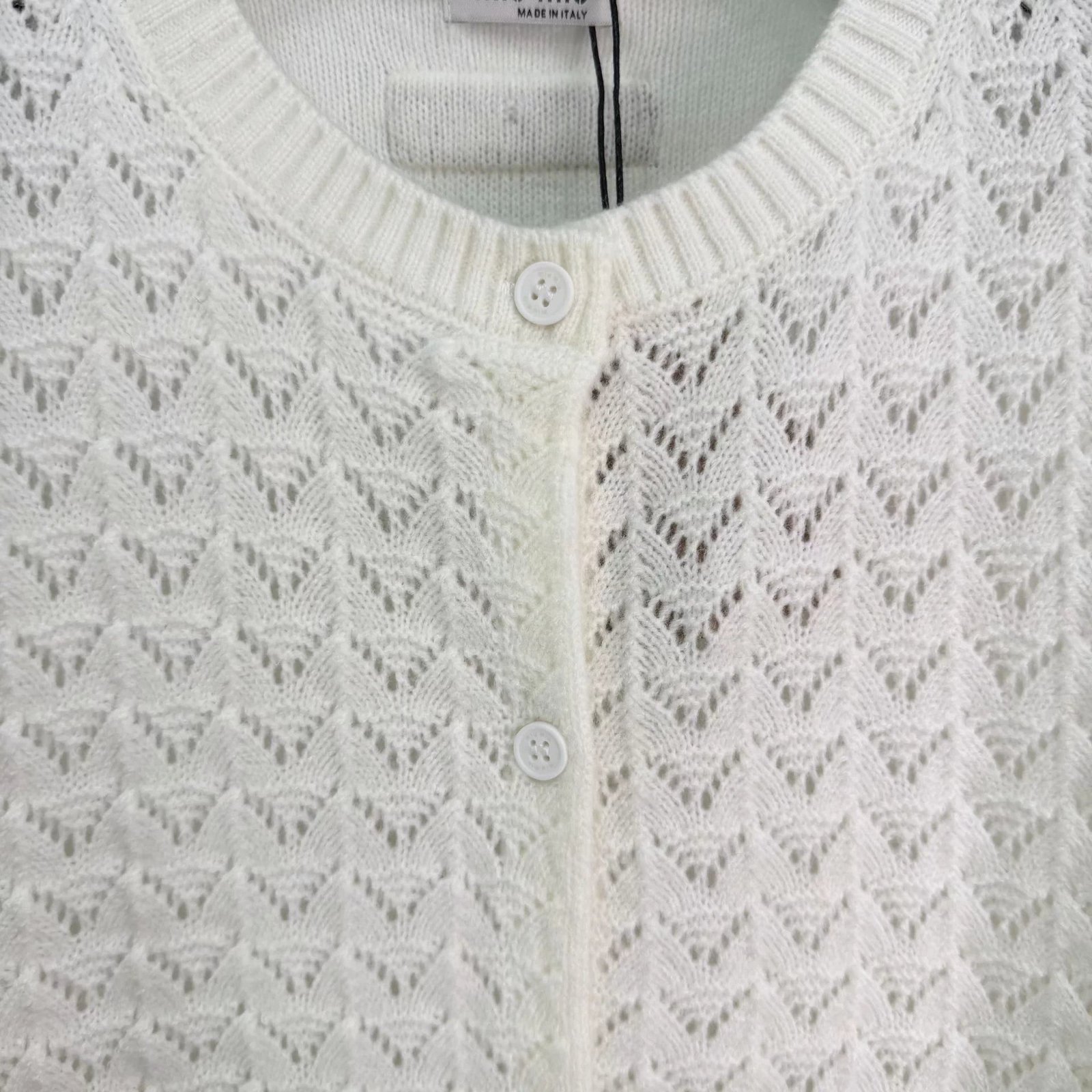 Made from wool yarn with a super-dense treatment, this cardigan boasts a soft, supple texture and excellent elasticity. The round neck design features a three-dimensional feather-patterned openwork knit, delicate and textured. The round neck is paired with matching buttons, a simple yet sophisticated touch. The loose fit flatters all body types, and the soft knit fabric is both skin-friendly and warm. Wear it alone for a youthful and energetic look, or layer it with a camisole or shirt for a touch of gentle French chic. It’s the epitome of sweet and stylish dressing.