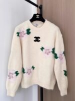 Features a floral jacquard design, round neck, long sleeves, and a relaxed fit. Comfortable for autumn and winter, soft and gentle on the skin. Looks great with pants or skirts, exuding a youthful and gentle style.