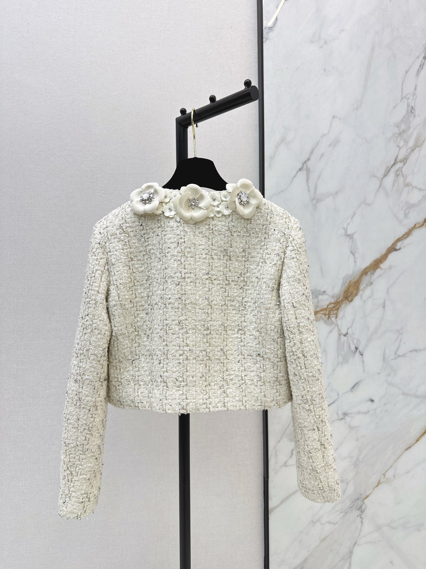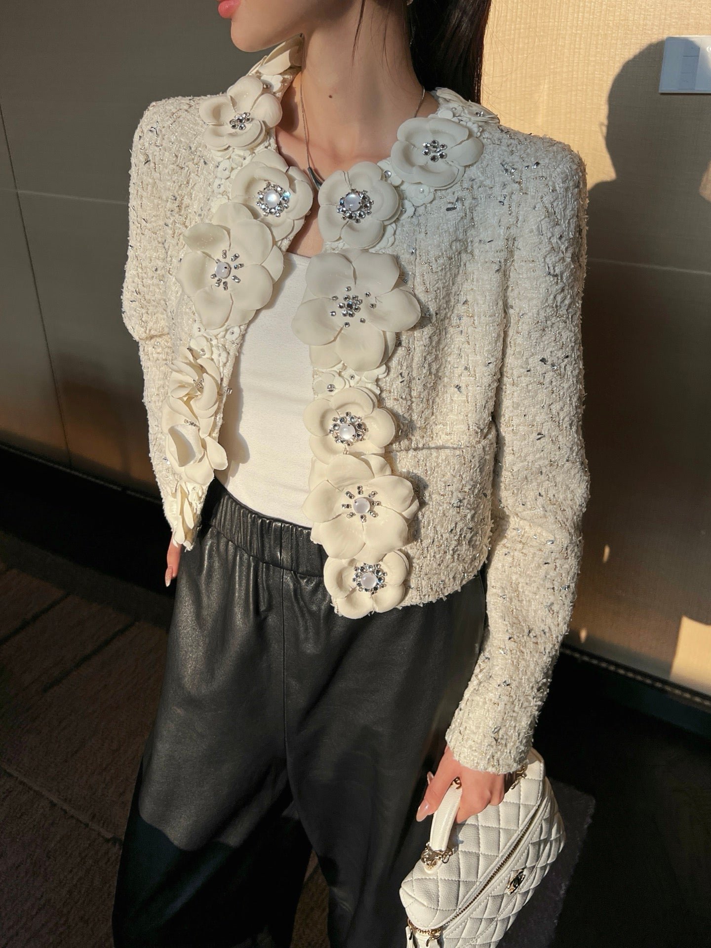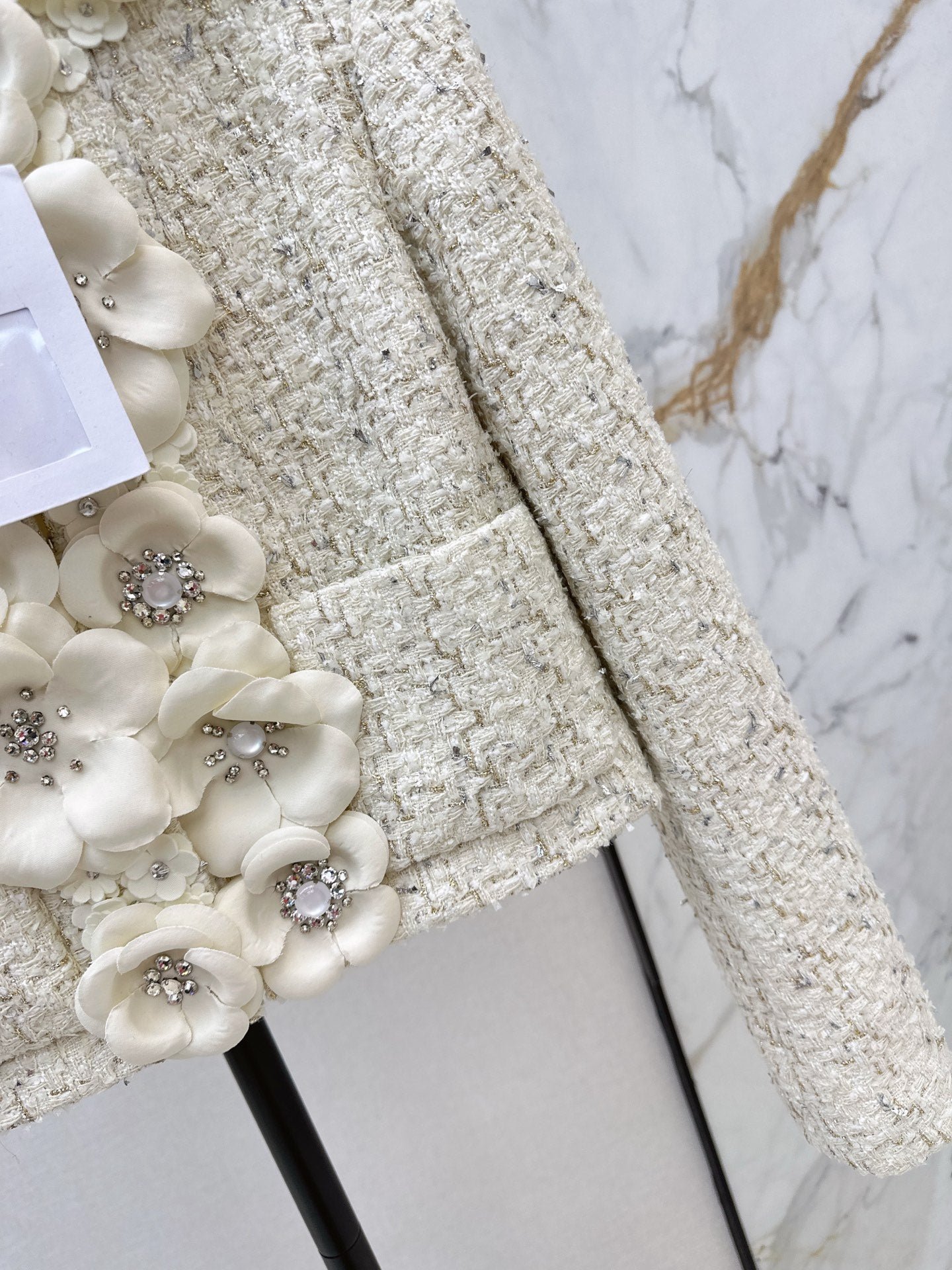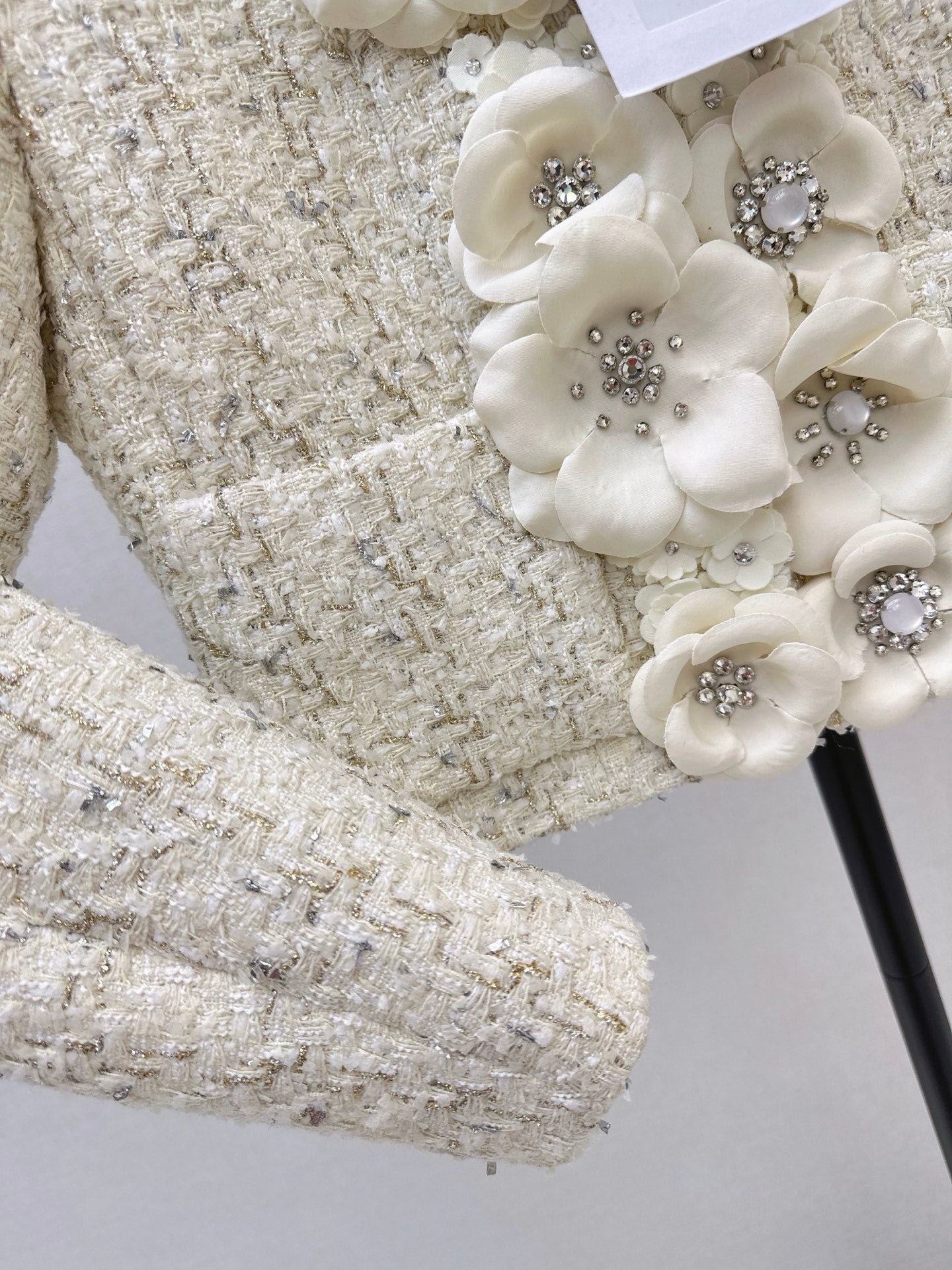 Made of plaid woven fabric with handcrafted 3D flowers of varying sizes, this jacket is substantial and stunning! Perfect for summer vacations or everyday photos.