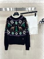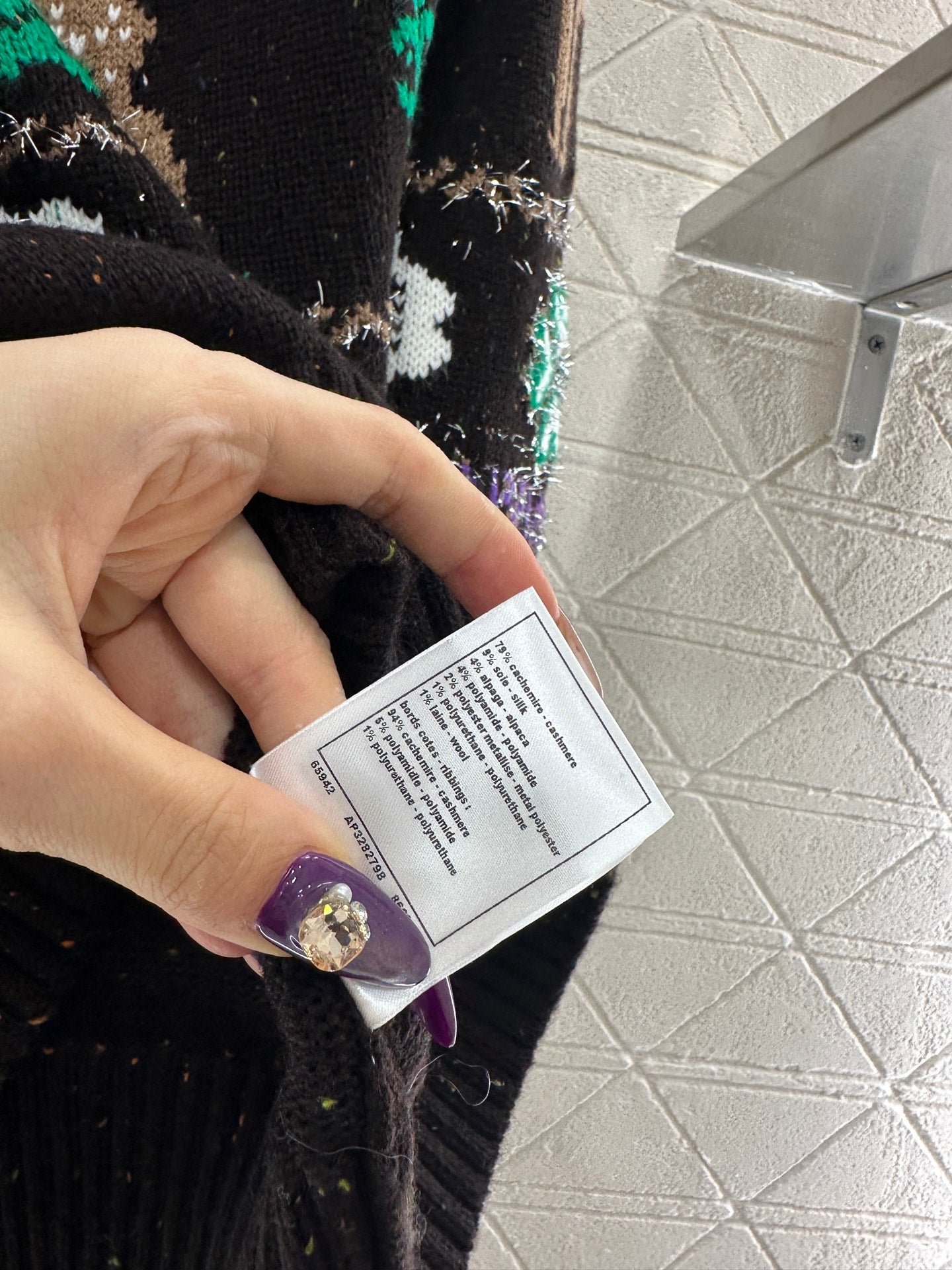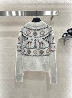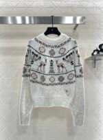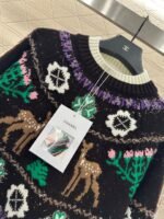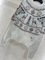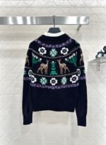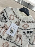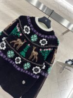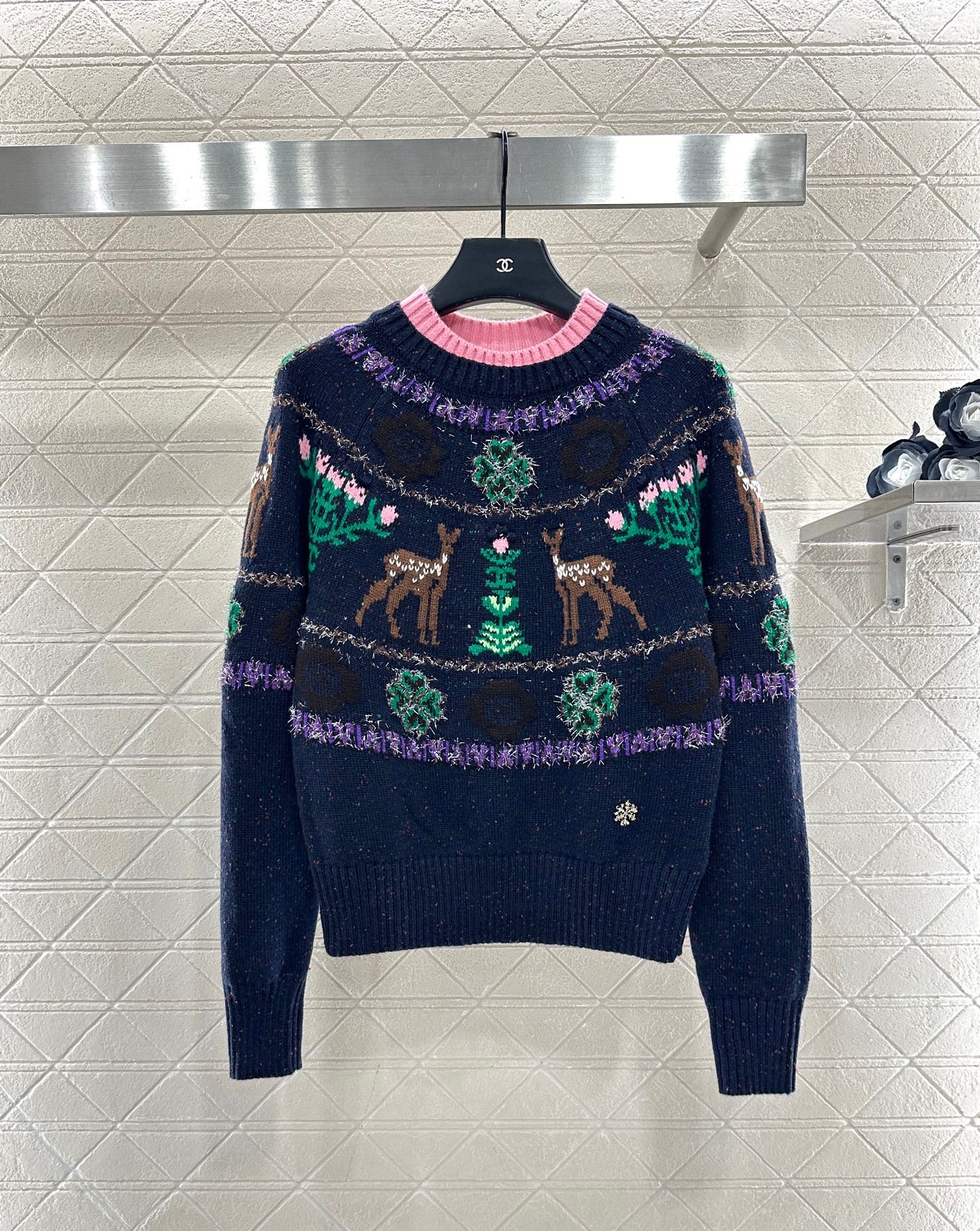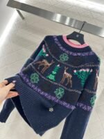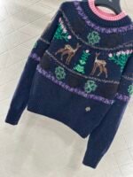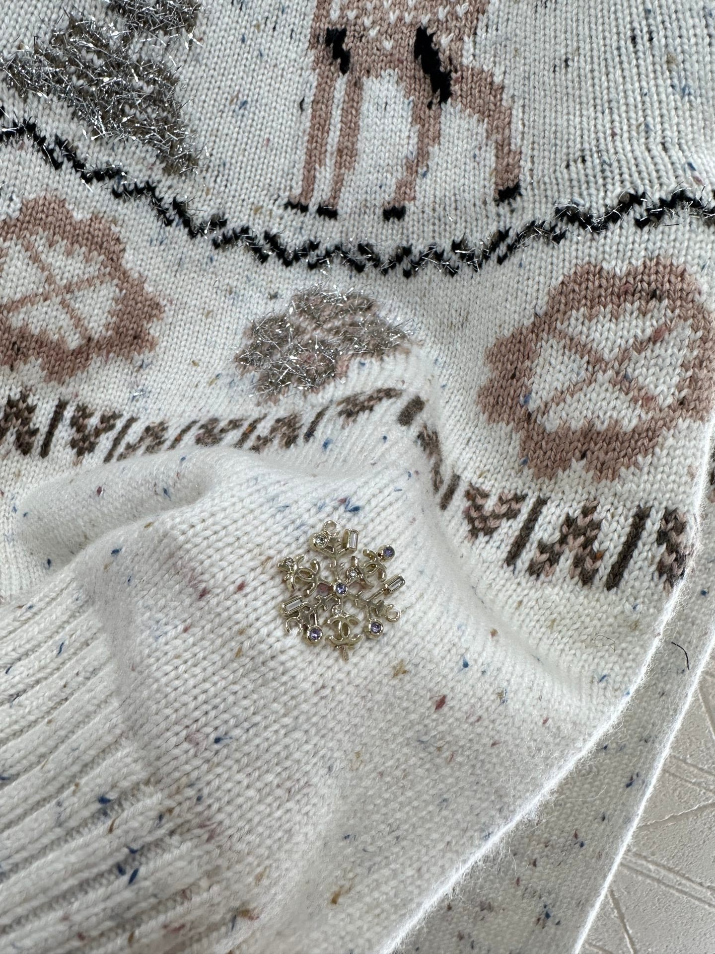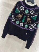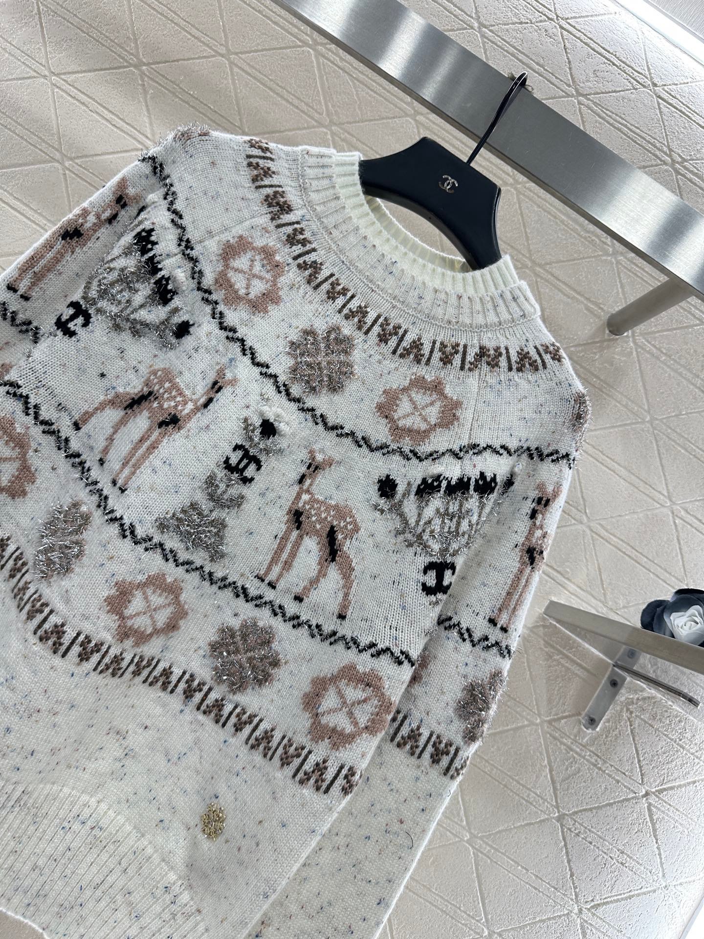 25Coco Christmas 🧑🎄 skiing 🎿 Series # Cashmere Knitted Material, High Quality, Comfortable and Soft, Round Neck Long Sleeve Sweater, with Threaded Edges on the Collar and Cuffs to Match the Pendulum, Neck Down to Chest, Adorned with Fer Island Nordic Style Hook Flower Pattern, Interwoven with Deer ➕ The double C letter logo echoes the rhinestone double C pin at the hem, highlighting the brand’s tone. Made of cashmere knit fabric, it is warm and comfortable, with a regular silhouette