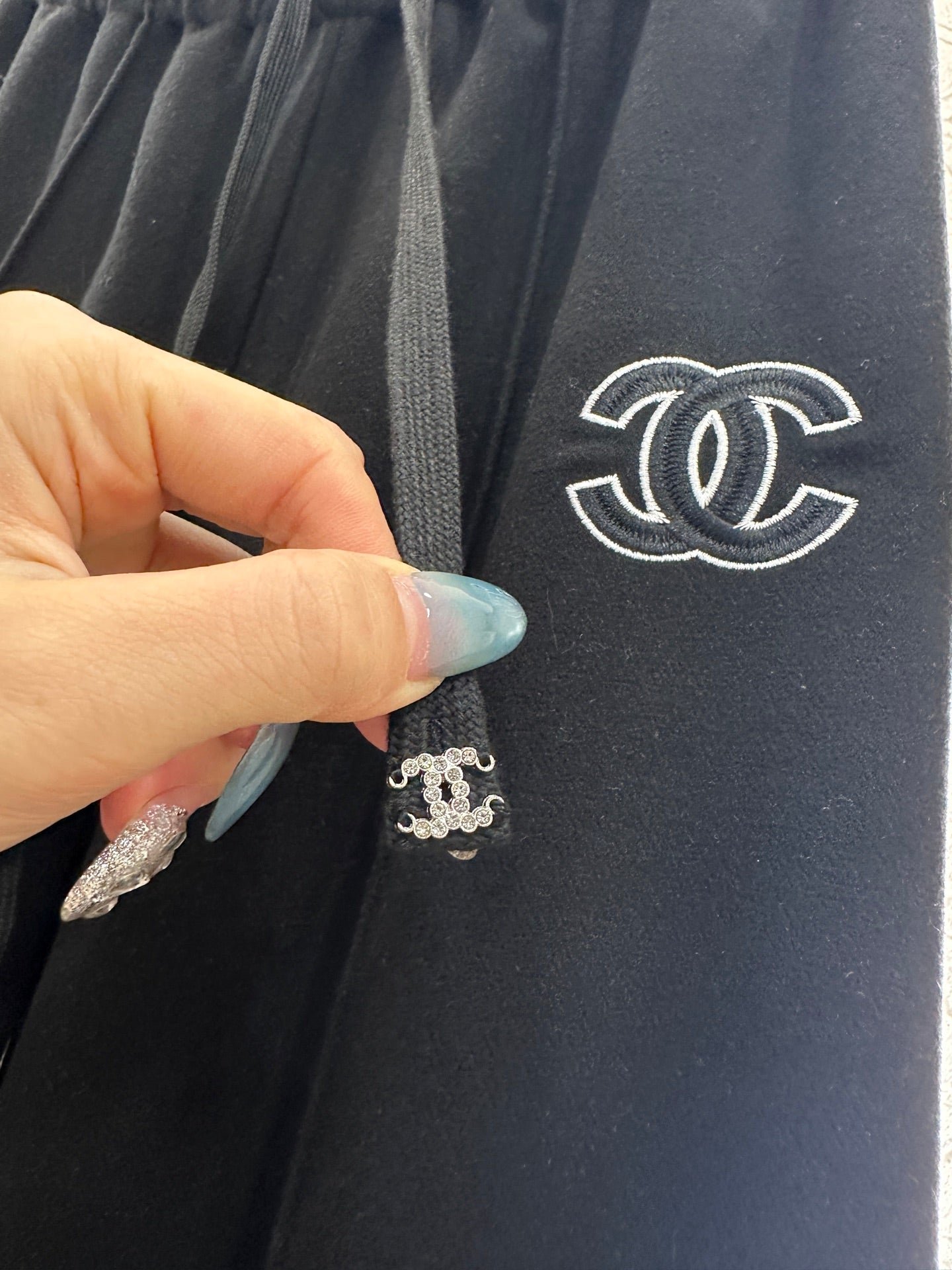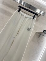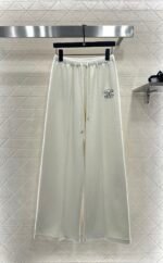 Made of cotton fiber material, the fabric is soft and comfortable, with delicate luster. The high waisted drawstring wide leg pants are versatile and durable, with a solid color throughout. The straight leg pants are created using three-dimensional cutting, making the upper body appear slim and the legs long, with a relaxed and fashionable style. Paired with the iconic double C embroidered letter logo at the waist, the brand’s style instantly elevates, exuding a high street fashion vibe