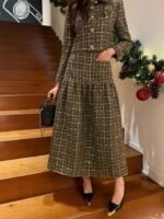 This skirt gives off a sophisticated, Korean-style vibe, perfect for dates or commuting. It exudes a natural elegance and is versatile enough to be worn separately. Made with a custom-woven, thick fabric, it features subtle sequin details upon closer inspection.