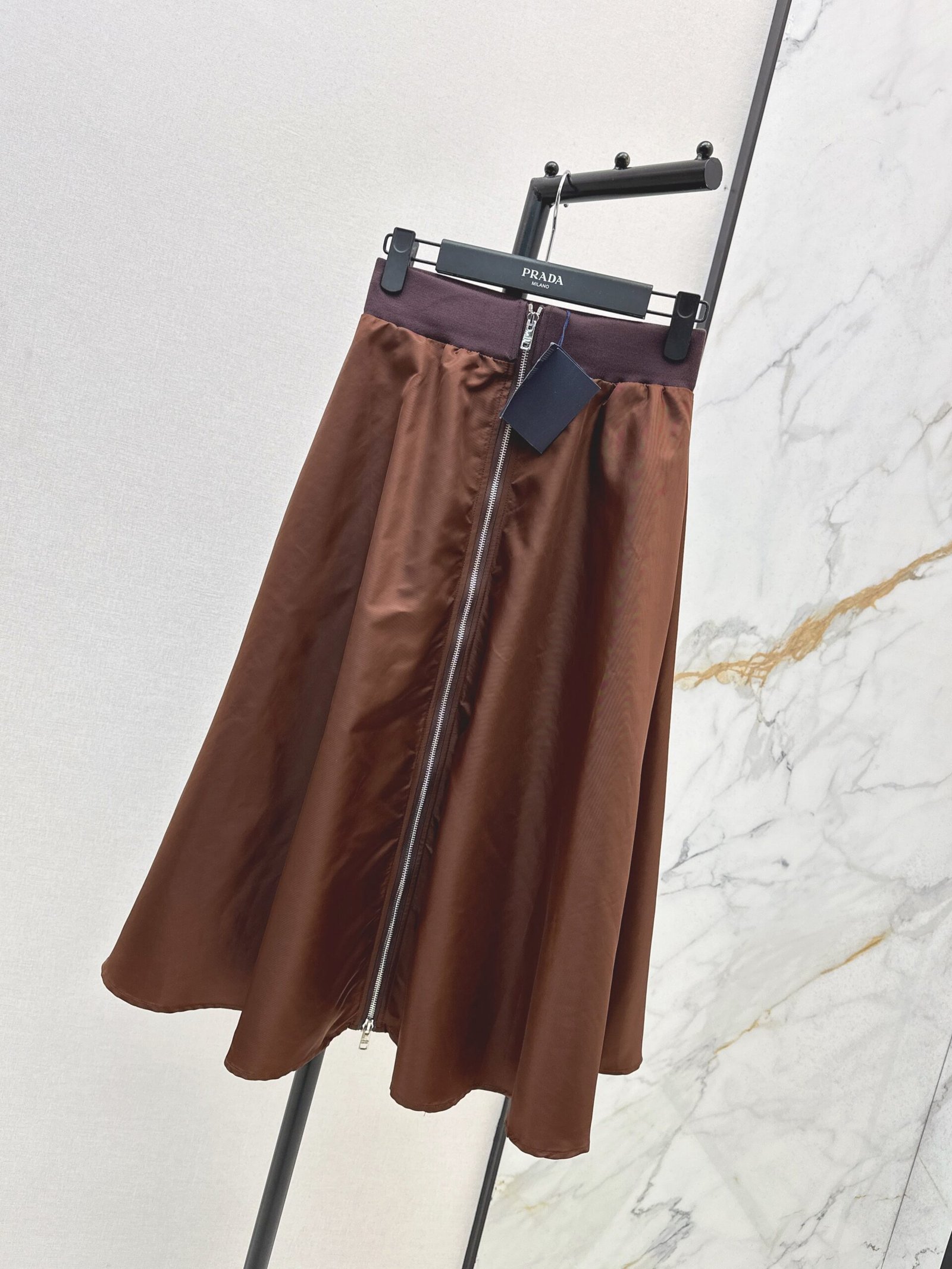 High waisted umbrella shaped nylon skirt