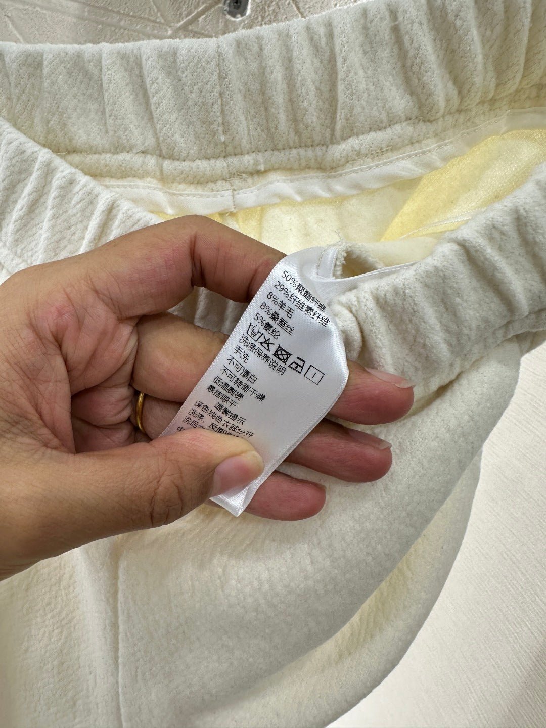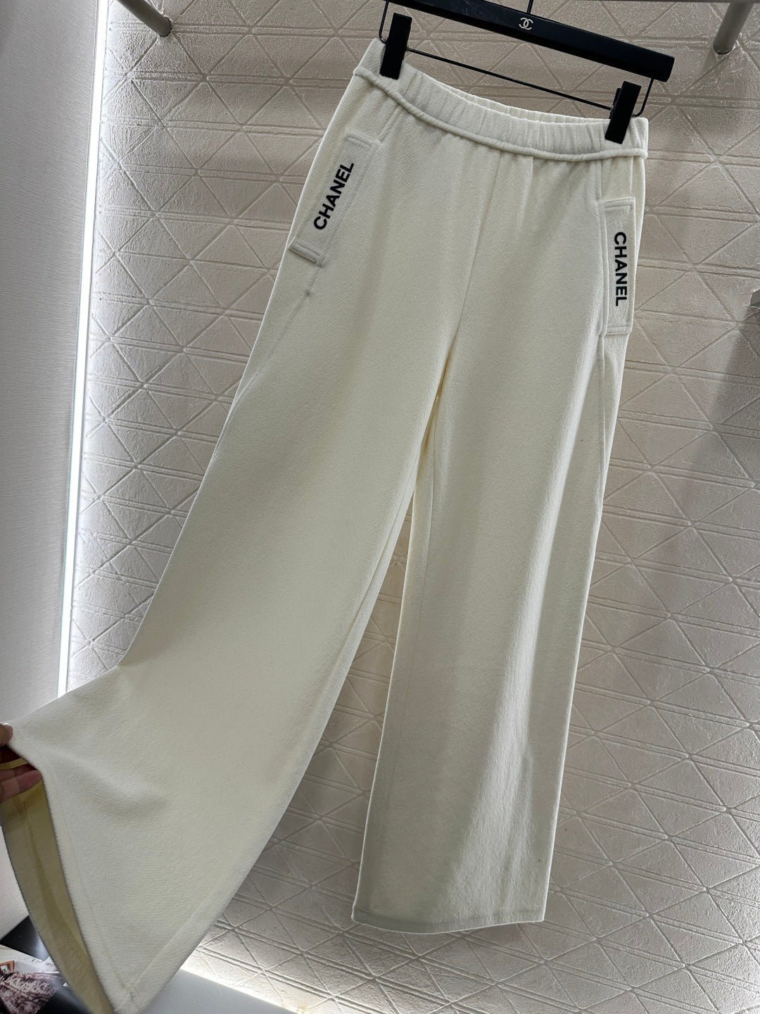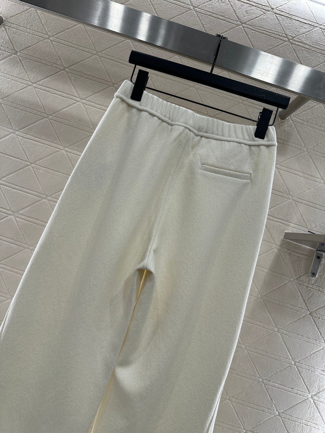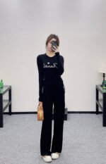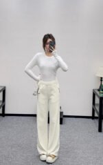 Made of wool blend material, the fabric is soft and comfortable, with delicate luster. The high waisted and wide leg pants have a versatile and durable design, with a solid color throughout. The straight leg pants are created using three-dimensional cutting, making the upper body appear slim and the legs long, with a relaxed and fashionable style. Paired with the iconic contrasting letter logos on both sides of the pockets, the brand’s style instantly elevates, exuding a high street fashion vibe. First class plush insulation