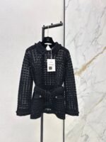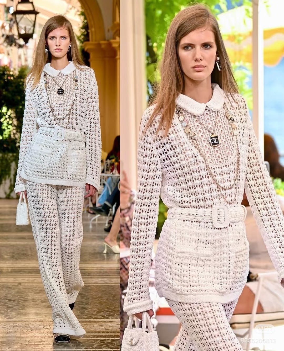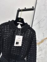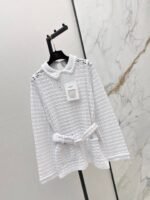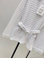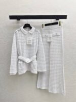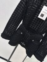 Located openwork knit top + trousers. A stunning must-have for elegant and sophisticated women. Features include a meticulously crafted openwork embossed knit collar, a belted waist to elongate the figure, and luxurious overlock stitching. The double-pocket design is versatile, flattering, and stylish.