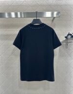 Made of all cotton material, breathable and comfortable, with a rich texture. The round neck short sleeved T-shirt is cut to highlight the brand’s style. It is made of heavyweight pure cotton with slight elasticity, presenting a slimming visual effect. The chest is ironed to restore the brand’s letter logo, and the gorgeous effect of willow around the collar highlights the high-end style. It is fashionable and eye-catching when worn alone, with a glossy and reflective effect